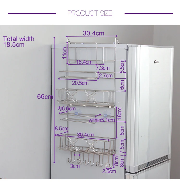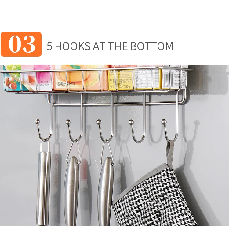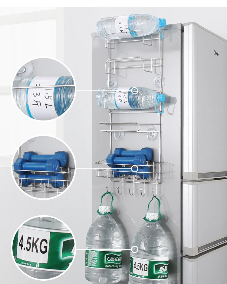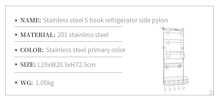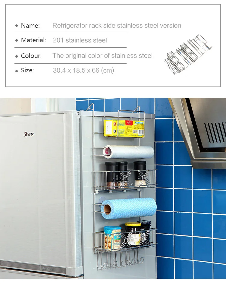 ORZ органайзер для холодильника из нержавеющей стали, кухонная стойка для хранения, боковая полка для холодильника, крючки для хранения, кухонные аксессуары, органайзер, держатель