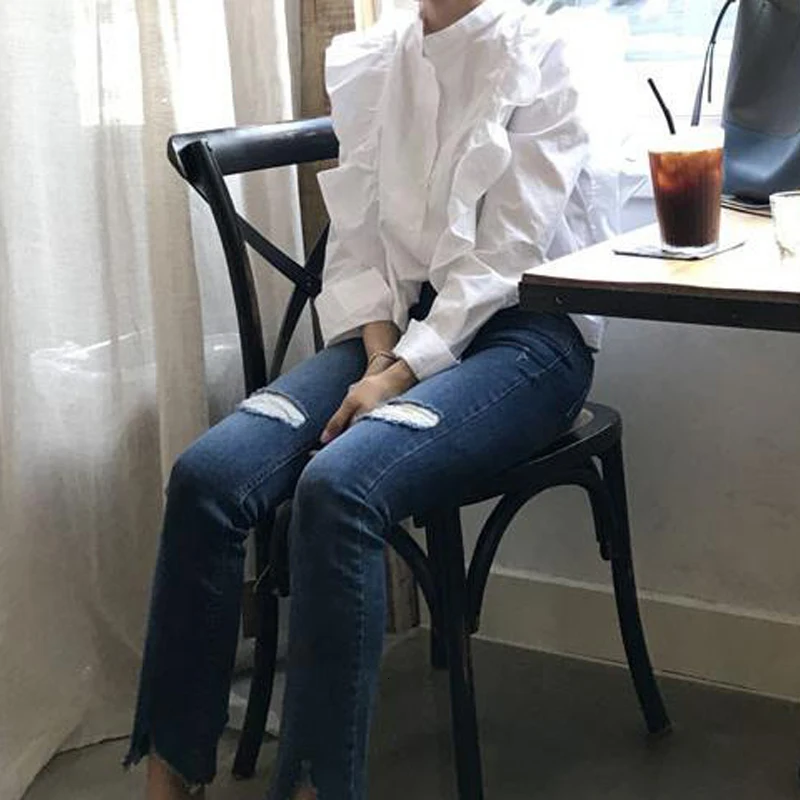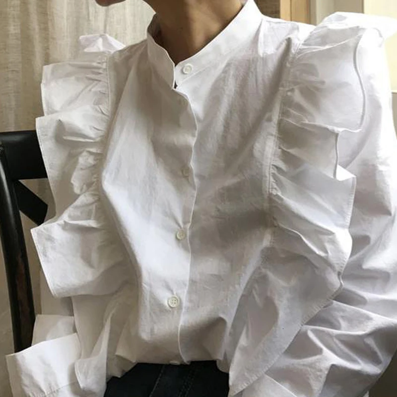 Название:Женская рубашка с воротником-стойкой RealShe, повседневная Однотонная рубашка с длинными рукавами и блузки, Blusas Camisas Femininas
