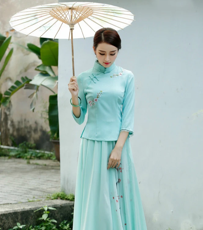 Sheng Coco, темно-синие рубашки, китайская винтажная одежда, топы ципао с вышивкой и кружевными краями, льняные рубашки, китайский костюм