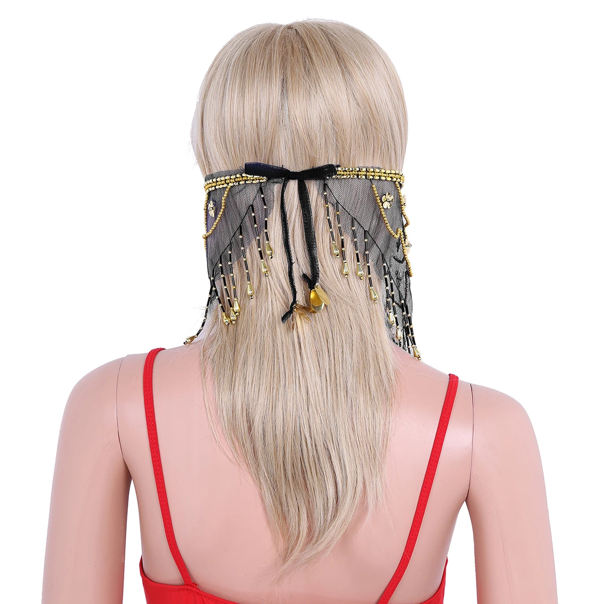 Женская вуаль для танца живота с этническим лицом с бусинами и кисточками, аксессуар для костюма на Хэллоуин.