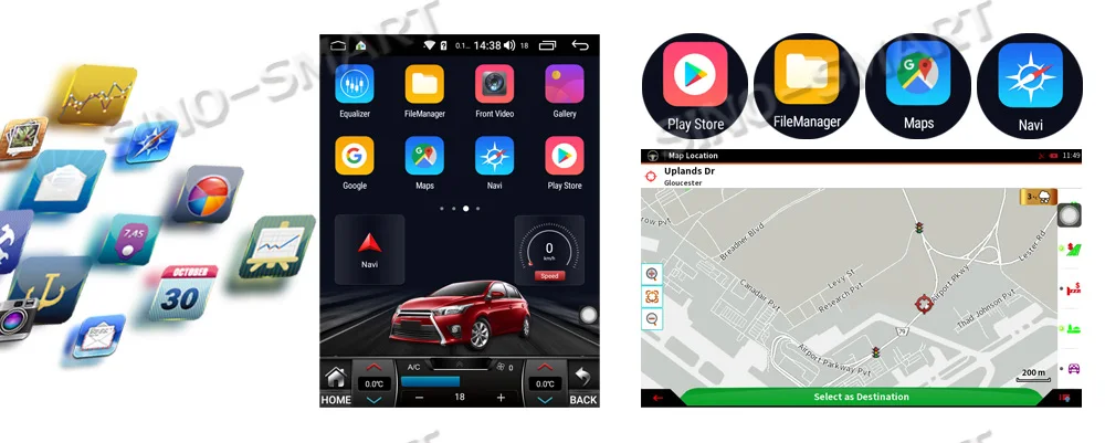 1. Google Play store (загрузите миллион приложений из google play store и установите), встроенный GPS (вы можете использовать онлайн-карту google или другое популярное онлайн/автономное навигационное приложение)