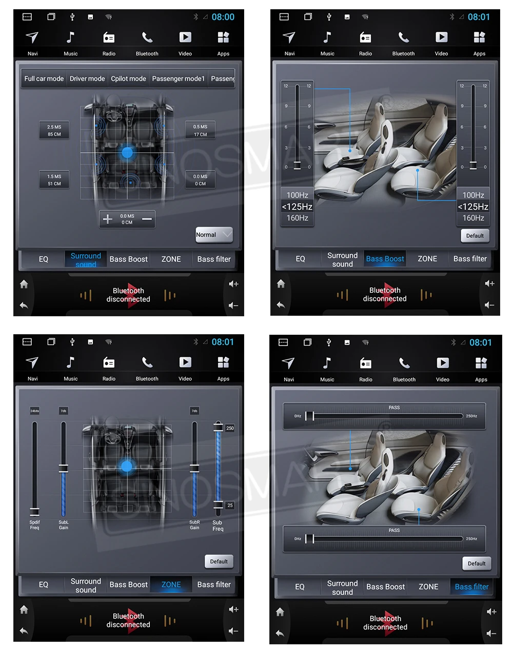 Встроенный Аудиопроцессор DSP для Hi-Fi звука, независимая Регулировка передних и задних динамиков, настройка 48EQ дает вам фантастическую музыку! Какова функция встроенного DSP аудиопроцессора? Это цифровой сигнальный процессор, который позволяет вам самостоятельно управлять множеством различных сторон каждого динамика в вашей пользовательской автомобильной аудиосистеме. Вы можете выполнять различные задачи настройки с помощью DSP, такие как управление выравниванием времени для создания отличного центрального изображения, вы можете настроить Кроссоверы для отправки только определенных частот в твитеры, динамики среднего диапазона, средние басовые динамики и сабвуферы, и вы можете управлять эквалайзером, чтобы настроить каждый динамик на целевой уровень отклика.