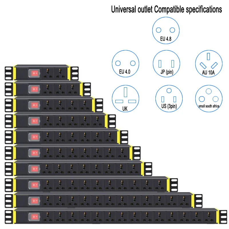 PDU шкаф питания полоса с переключателем 6/8AC универсальные розетки Lightning перегрузки...US $20,99