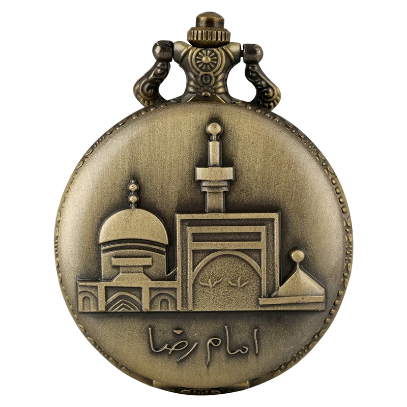 Ретро Внешний вид: данная модель часов состоит из большого часы с белым циферблатом, бронзового сплава ожерелье на цепочке и винтажных зданий узор чехол.