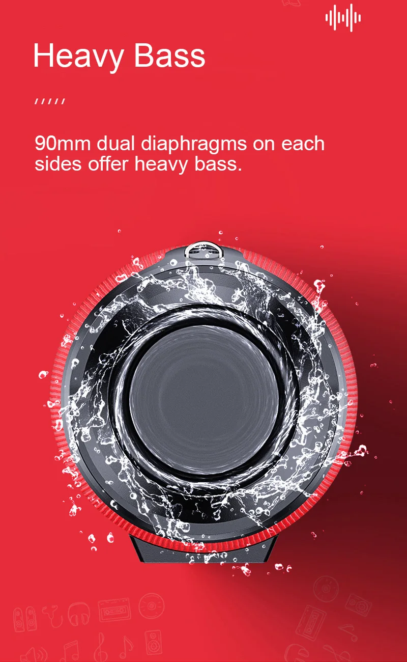 1. Новый товар и высокое качество. 2. Сетчатая крышка для защиты динамика от воды, пыли, ударов. 3. IPX5 водонепроницаемый, пыленепроницаемый, ударопрочный. 4. 10 Вт * 2 большой мощности с двумя басовыми диафрагмами с каждой стороны, вибрируют при воспроизведении музыки. 5. Цилиндрическая форма и встроенный левый и правый канал обеспечивают 360 ° стерео. 6. Функция вызова, микрофон с шумоподавлением позволяет вам отвечать на звонки, не достигая телефона. 7. Fm-приемник позволяет свободно слушать радио. 8. Поддержка MP3, WMA, WAV, FLAC, APE форматов музыкальных файлов. 9. Поддержка tf-карты или misro sd-карты до 32G, поддержка USB 2,0 диска. 10. Поддержка USB флэш-диска plug and play. 11. Поддержка внешнего MP3 / MP4/компьютера и другой функции аудиовхода (AUX) 12. Функция TWS, вы можете подключить два динамика с помощью одного телефона синхронизации. 13. Простое управление кнопками, вы можете нажимать кнопки для включения/выключения, воспроизведения/паузы, переключения режима, пропуска песен, регулировки громкости и т. Д. 14. Bluetooth 4,2, совместим со всеми устройствами Bluetooth. 15. Аккумулятор емкостью 3600 мА · ч обеспечивает до 10 часов воспроизведения при 2/3 громкости при полной зарядке. 16. Это не только динамик bluetooth, но и радио, проводной динамик, басовый бум.
