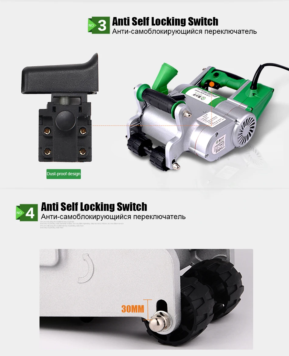 1100 ватт 25 мм/35 мм промышленная машина для нарезки стеновых желобов/машина для резки линиями 220 В Описание: Номинальное напряжение: 220 В Freguency: 50 Гц Входная мощность: 1100 Вт Скорость без нагрузки: 1600р/мин Машина для нарезания канавок в регулировка глубины: 16/25/30/35 мм (регулируется) Регулировка ширины канавок: 25-35 мм