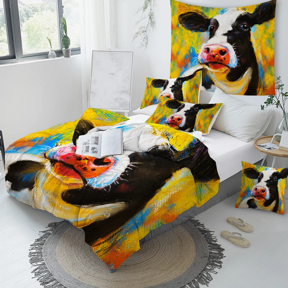 Название товара:Комплект постельного бельяУпаковочный лист:1 * пододеяльник + 2 * наволочкиТкань:ПолиэстерСезон:Весна, лето, осень, зимаОсобенности:Яркий дизайн портрета коровы, легко изменить стиль вашей спальни.Рекомендации по уходу за постельным бельем:1) Если для сочетания Вам дополнительно требуется простынь, пожалуйста, свяжитесь с нами.