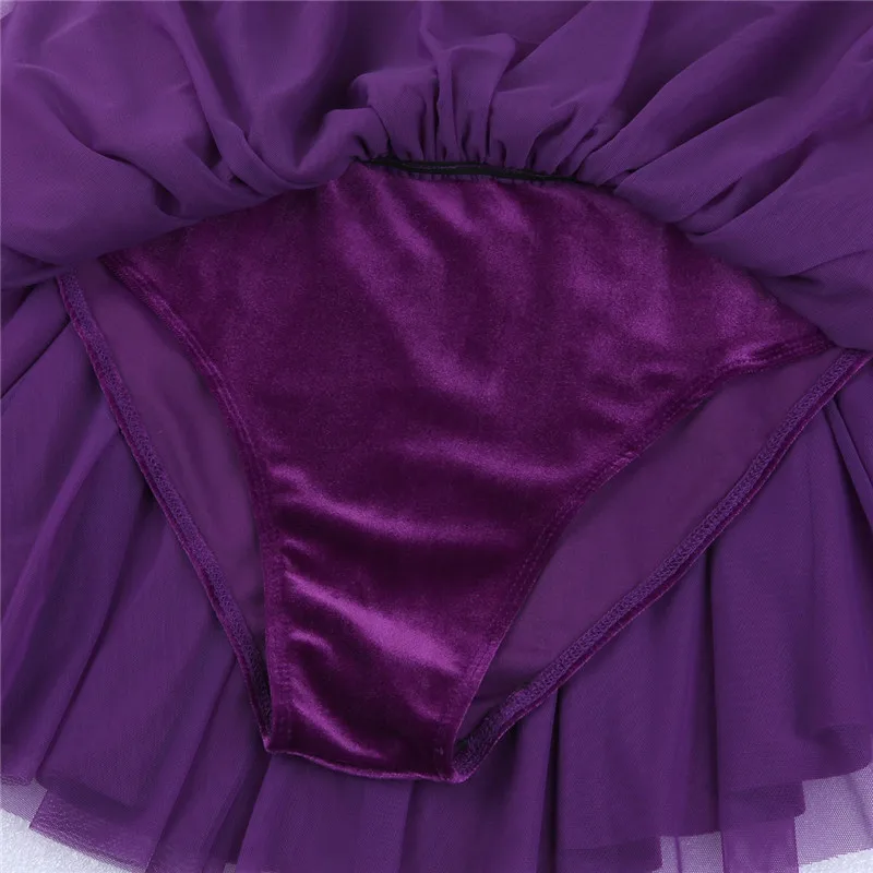 Встроенная короткая Двухслойная юбка крепится вокруг эластичной талии, 1 бархатный слой и 1 сетчатый слой.