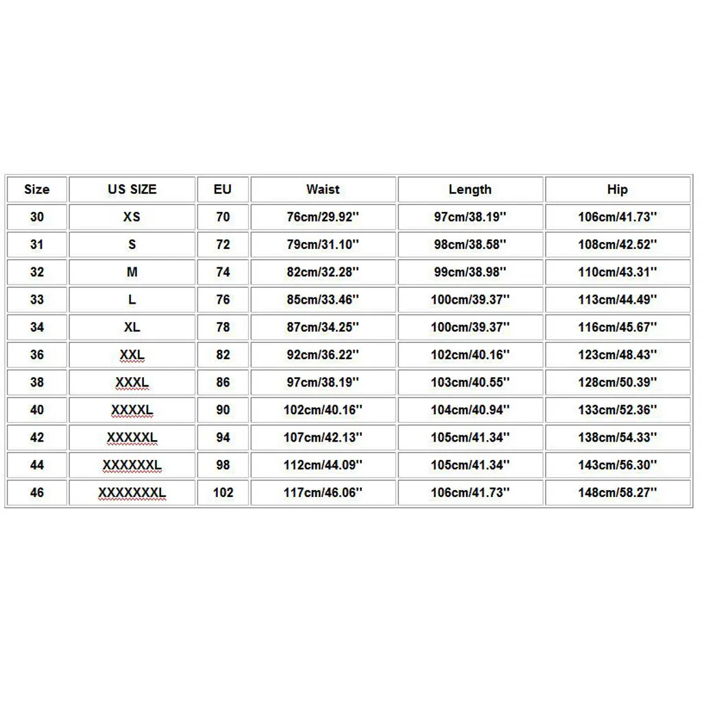 4.Размер брюк не является единственным критерием при определении размера. Если ваша талия или бедра толстые, пожалуйста, выберите размер, который вам подходит в соответствии с размером таблицы.