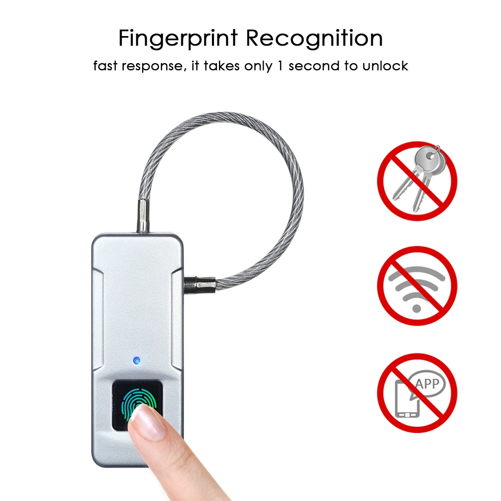 Купите этот замок без ключа с отпечатком пальца, чтобы избавится от проблем с потерей ключей или забудем пароль. Ваш отпечаток пальца-ваш пароль! Функция идентификации отпечатков пальцев обеспечивает безопасный и личный способ разблокировки и проверки личности. Улучшите безопасность Ваших дверей, шкафов, велосипедов, рюкзаков, шкафчиков для хранения и многого другого!
