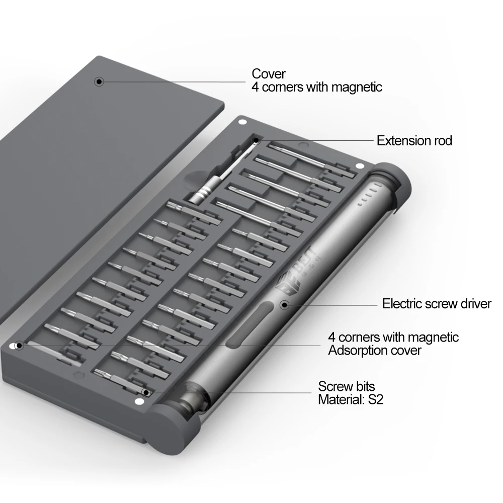Набор прецизионных отверток предназначен для электроники, ноутбуков, телефонов, компьютеров, очков, смартфонов, игрушек, ПК, часов, игровых приставок, камер, радио и большинства ручных устройств. Изготовлен из легированной инструментальной стали, имеет исключительную твердость и превосходную прочность и высокое качество.