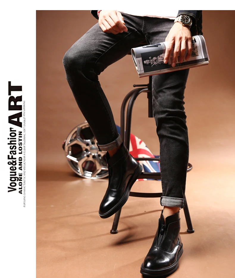 Модные черные модельные туфли-оксфорды на меху; Мужская зимняя деловая обувь Laarzen; Кроссовки; Мужская обувь на толстой подошве, увеличивающая рост