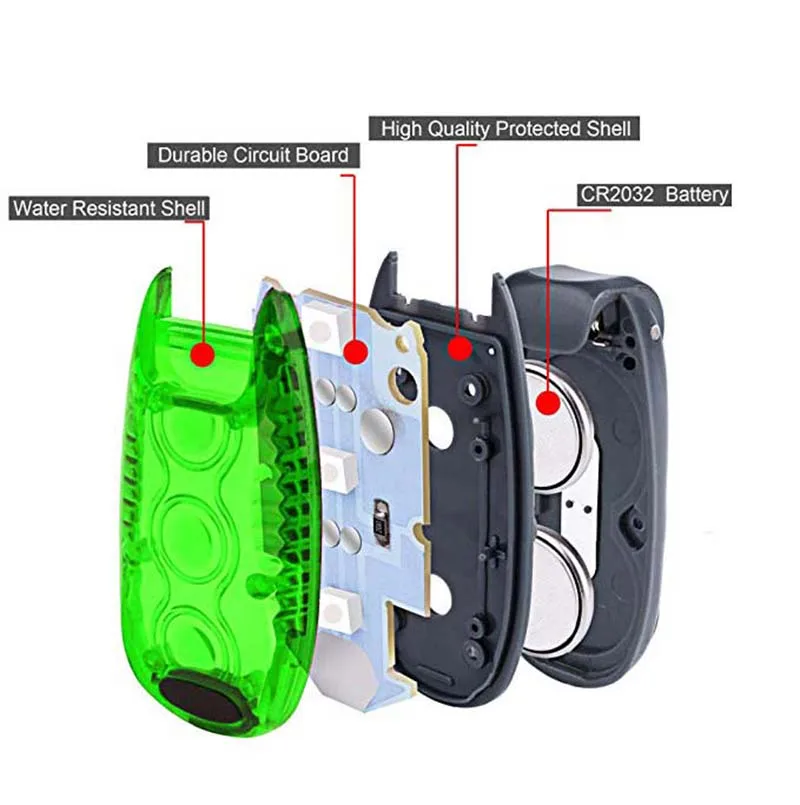 5. Тонкий, легкий, компактный и супер яркий набор безопасных огней с 3 привлекательными режимами освещения: стабильная, медленная вспышка (стробоскоп), быстрая вспышка. Ведущая в отрасли батарея включает в себя Срок службы батареи до 100 часов.