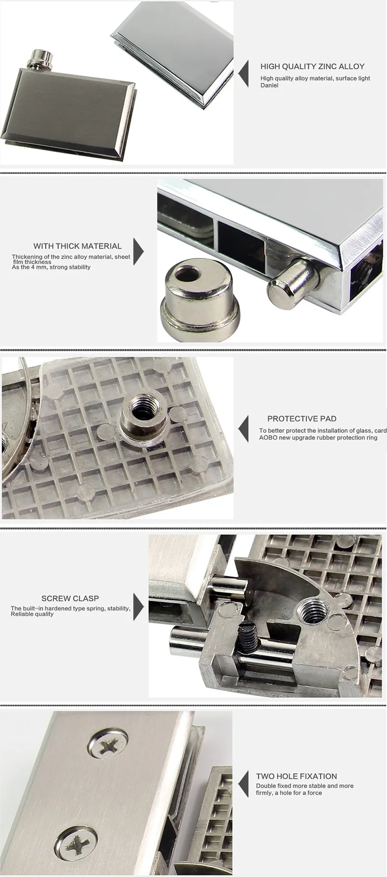 Размеры: как на картинке Доступный Размер стекла: 6-8 мм Материал: цинковый сплав Подходит для всех видов шкафов/обувных шкафов/шкафчиков, стеклянных дверей/витрины. Обработка поверхности: глянцевая/матовая Размер отверстия винта: 9 мм Основание: фиксированный Метод закрытия: цельный шарнир силы Способ установки: Встроенный/без крышки Толщина: 4 мм Посылка включает в себя: пару стеклянных дверных петель Почему стоит выбрать нас? 1. Высококачественный цинковый сплав, яркий и матовый, не легко ржавеет, устойчив к коррозии. 2. Высокопрочная Резиновая Защитная Прокладка, мягкая и жесткая, Антифрикционная, эффективно защищает стекло от повреждений. 3. Встроенная закаленная пружина, стабильная и прочная. 4. Двойные винты фиксируются, стабильны и прочны, и лучше поддерживают стекло. 5. Толстый материал, прочный, устойчивый и надежный.