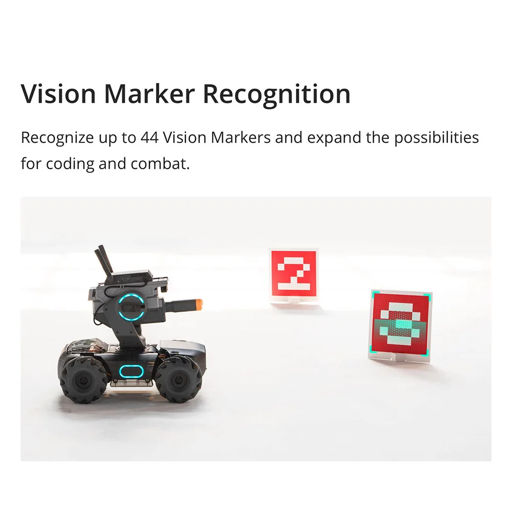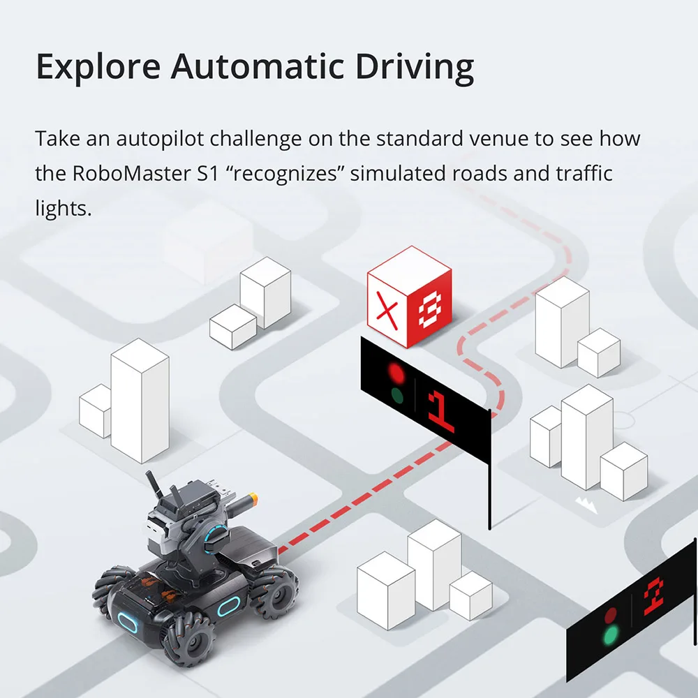 Используя маркеры видения для создания «светофоров» и других препятствий, пользователи могут писать свои собственные программы, которые позволяют S1 управлять автоматически и выполнять сложные задачи. Исследуйте Математические принципы с роботизированным управлением и механикой движения через шесть программируемых модулей искусственного интеллекта S1.