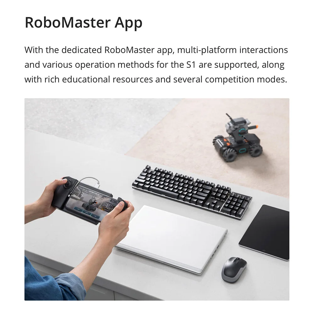 С помощью специального приложения RoboMaster поддерживаются многоплатформенные взаимодействие и различные методы работы для S1, а также богатые образовательные ресурсы и несколько режимов соревнований.