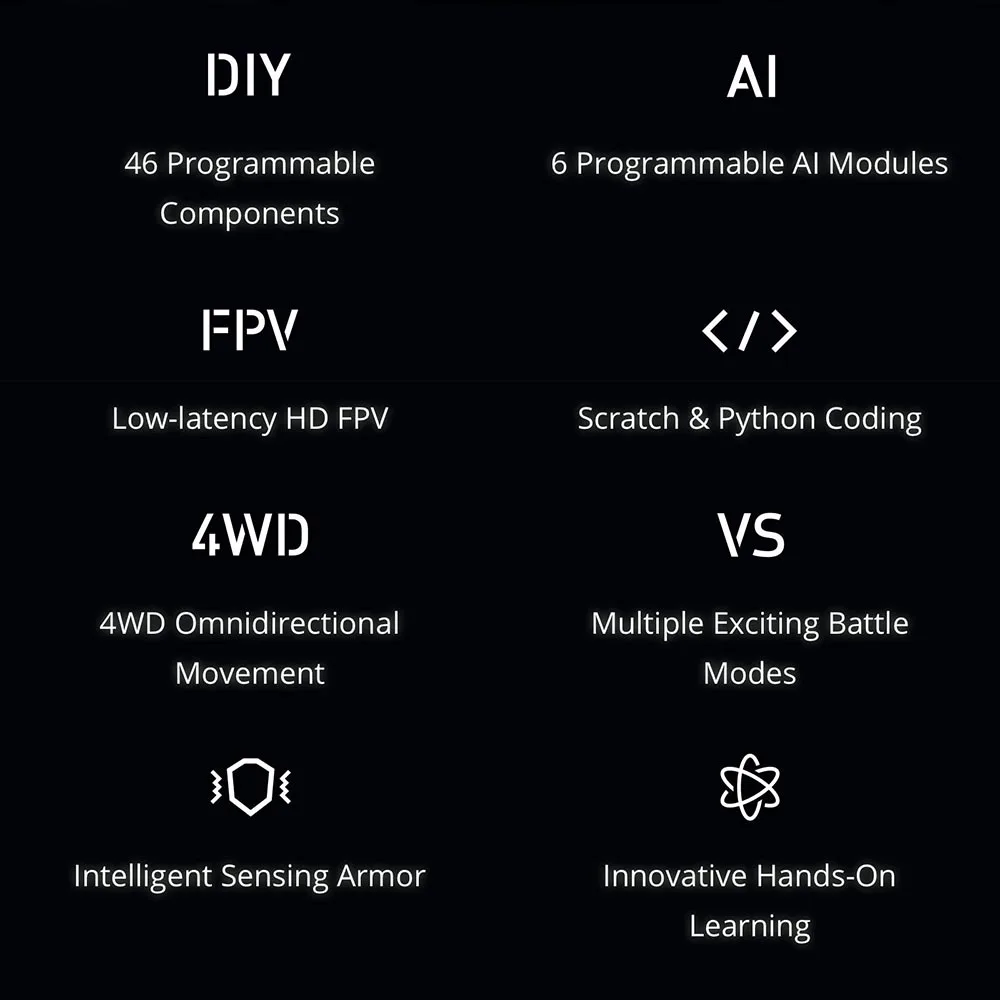 RoboMaster S1-это развивающий робот, изменяющий игру, созданный, чтобы раскрыть потенциал каждого учащегося. Вдохновленный ежегодным конкурсом роботехники RoboMaster, S1 предоставляет пользователям глубокое понимание науки, математики, физики, программирования и многого другого через захватывающие режимы геймплея и интеллектуальные функции.