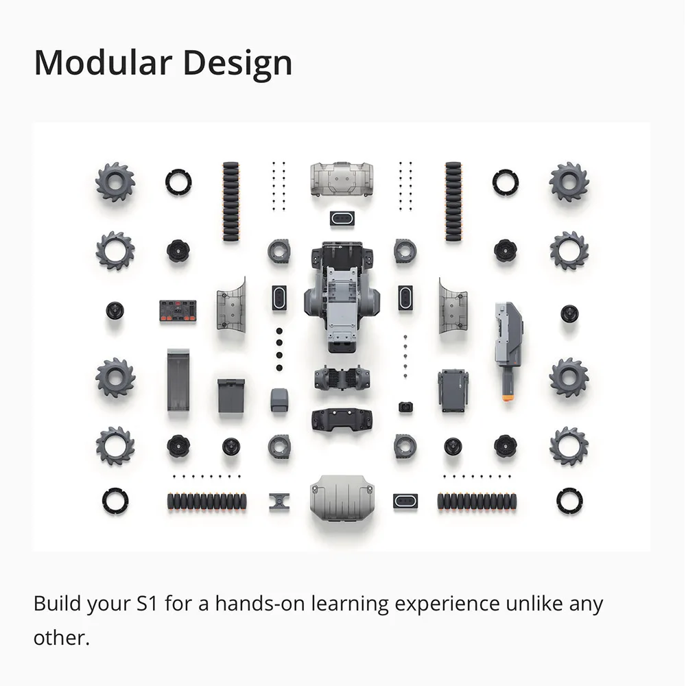 До 46 настраиваемых компонентов дают вам неограниченное пространство для инноваций, помогая вам расти и учиться захватывающим способом, который расширяет возможности вашего S1 и себя. Шесть PWM портов поддерживают индивидуальные аксессуары, что позволяет вам изучить неограниченные возможности S1 и магию роботизированного мира.