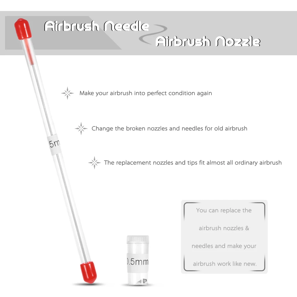 Сменные сопла и наконечники airbrush отличаются отличным качеством, особенно для начинающих. Вы можете заменить насадки и иглы аэрографа и сделать вашу Аэрограф новой.
