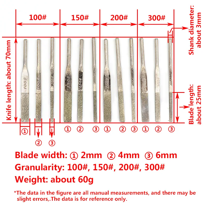 12 шт. 150/200/300 Грит Ассорти алмазный напильник для конических фрез 3 мм Мини Рашпиль игольчатый напильник для ремонта файл для шлифовки инструменты для нефрита дерево Стекло HSS