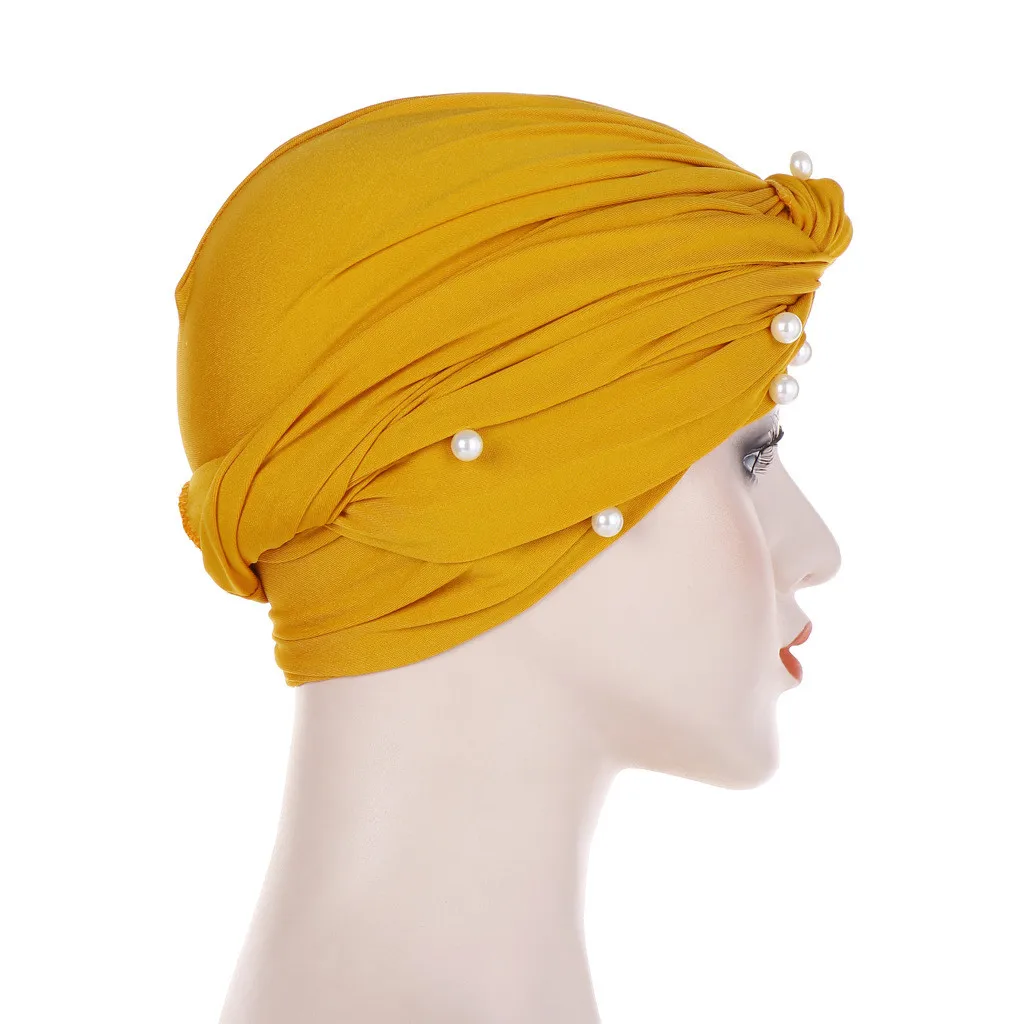 Женский головной убор в индийском стиле с бусинами и бусинами, мусульманская гофрированная Шапочка-тюрбан шапочка