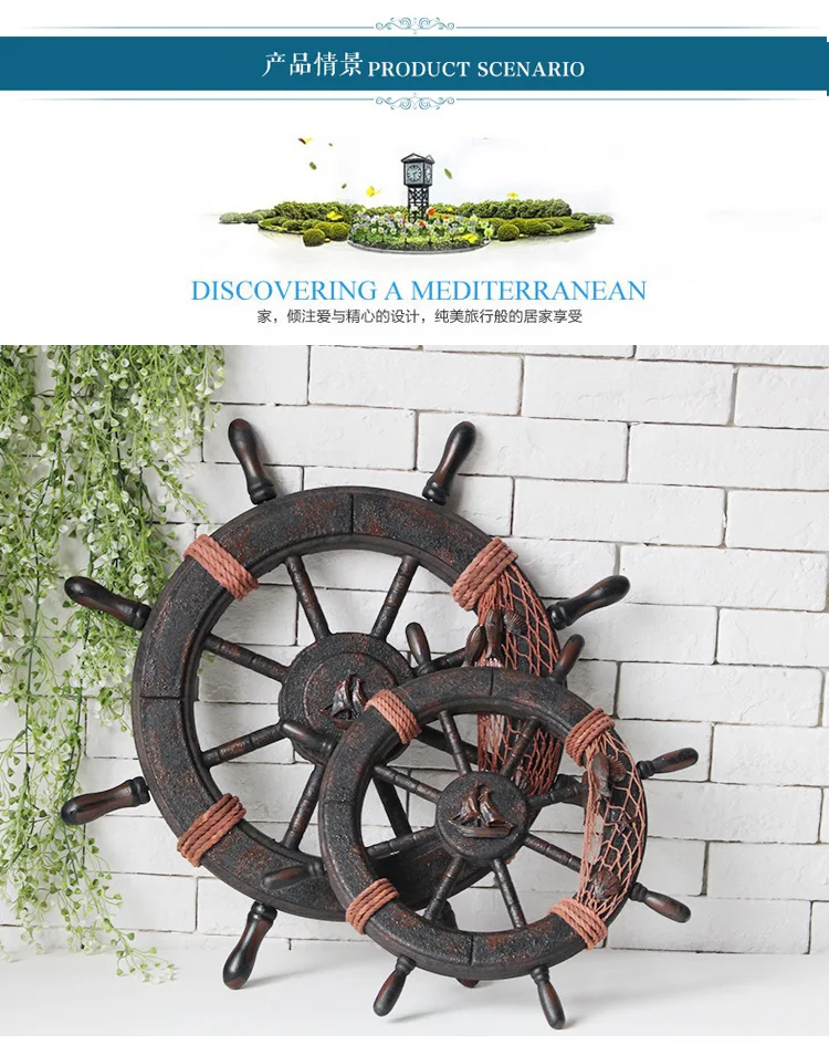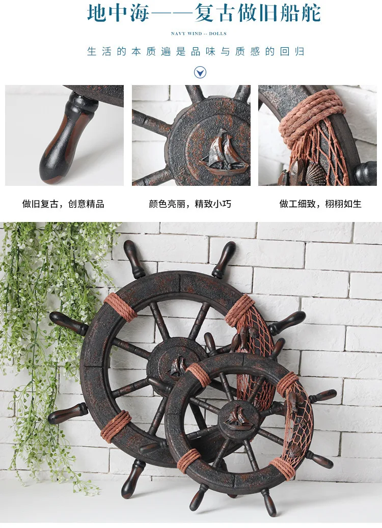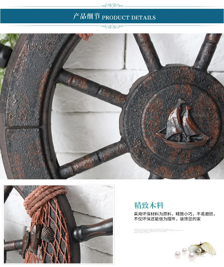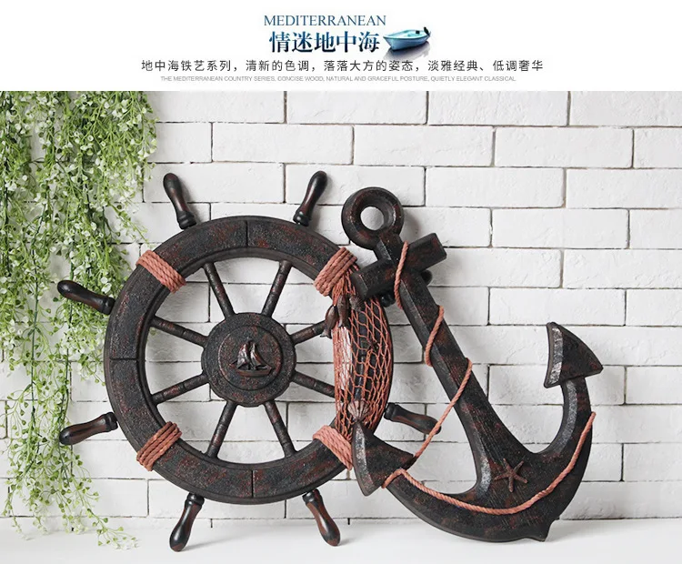 Морской пляж деревянная лодка корабль рулевое колесо Рыболовная сеть оболочки дома настенные украшения цвет: как на фотографии Материал: дерево