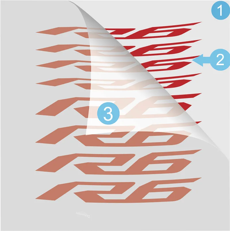 Полный стикер состоит из трех частей. Первый слой-это бумага для защиты клея. Ее необходимо отклеивать перед склеиванием. Второй слой-виниловый клей. Адгезия сильна, и ее нелегко отвалить. Третий слой-защитная пленка, водонепроницаемый солнцезащитный крем не выцветает.