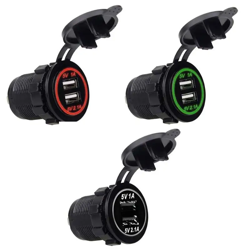 Универсальное автомобильное зарядное устройство водонепроницаемое DC12V-24V 2.1A/1A двойной зарядное устройство USB 2 порта гнездо адаптера питания с индикатором