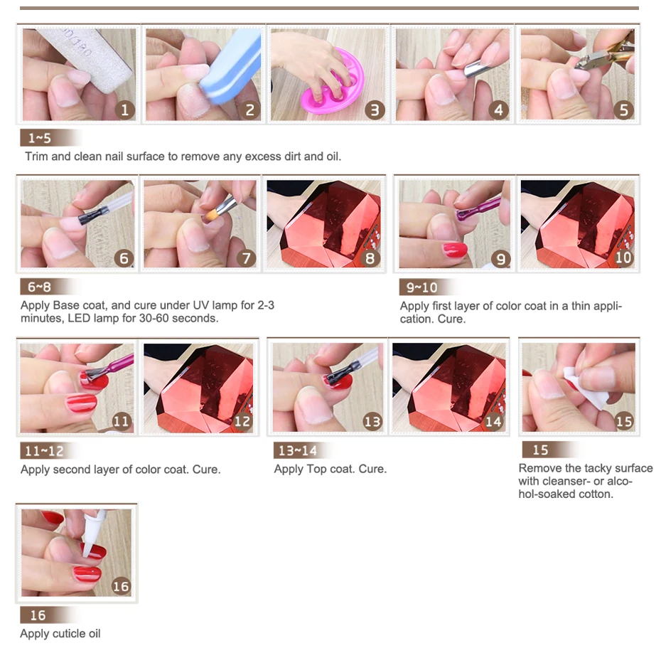 * Здоровые и экологически чистые инфридиенты используются для производства отличного гель-лака;