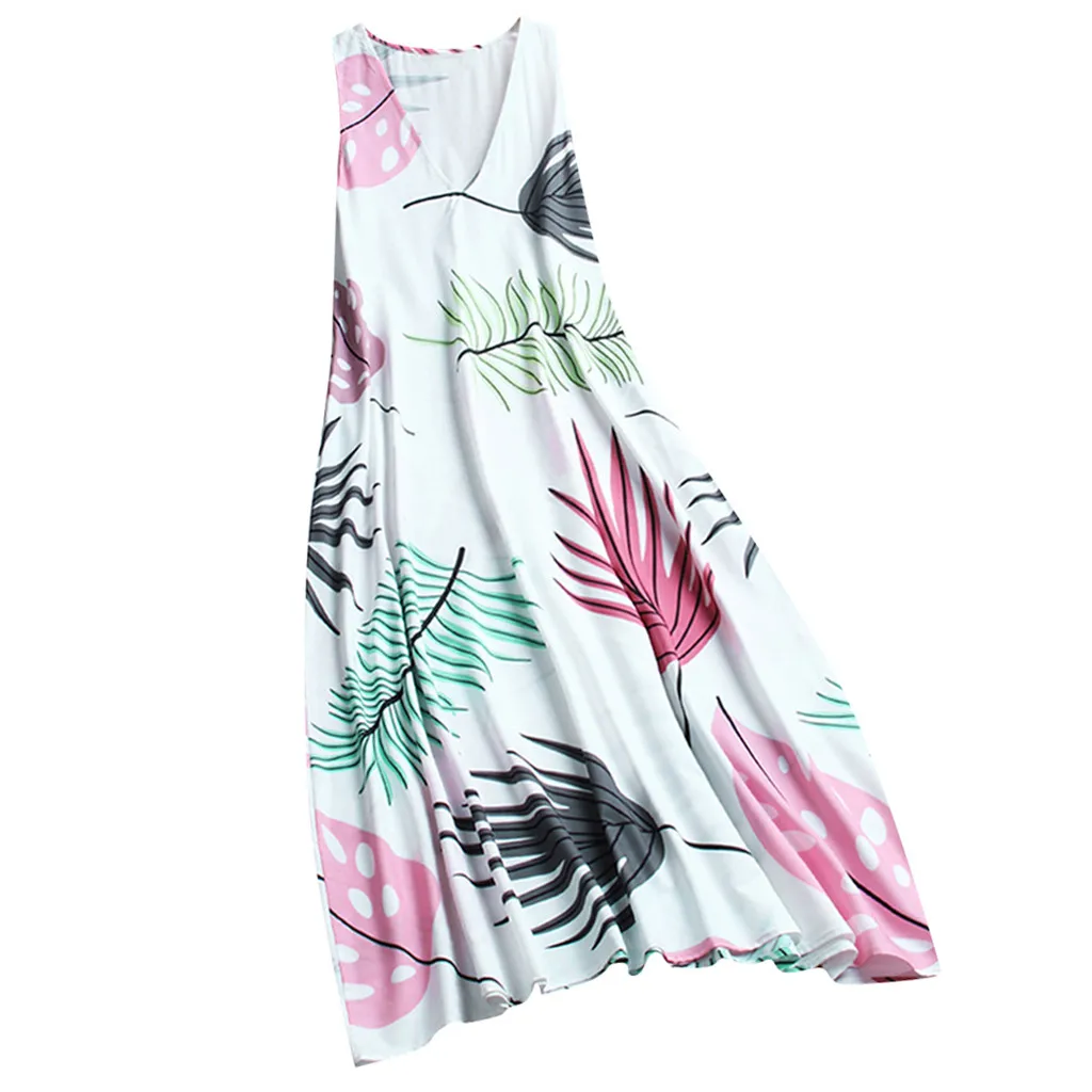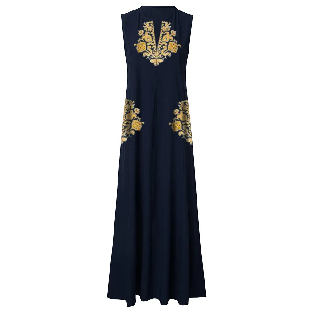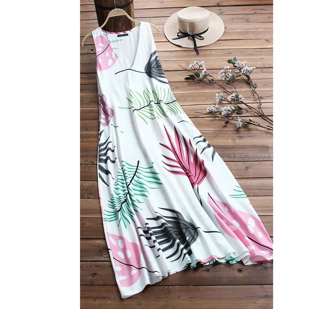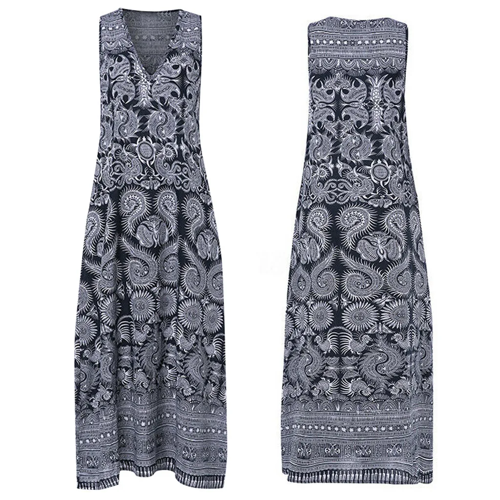 Женское винтажное Повседневное платье без рукавов, с V-образным вырезом и вышивкой, большие размеры, на лето