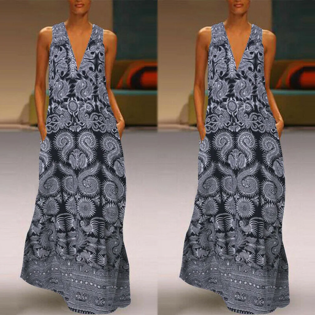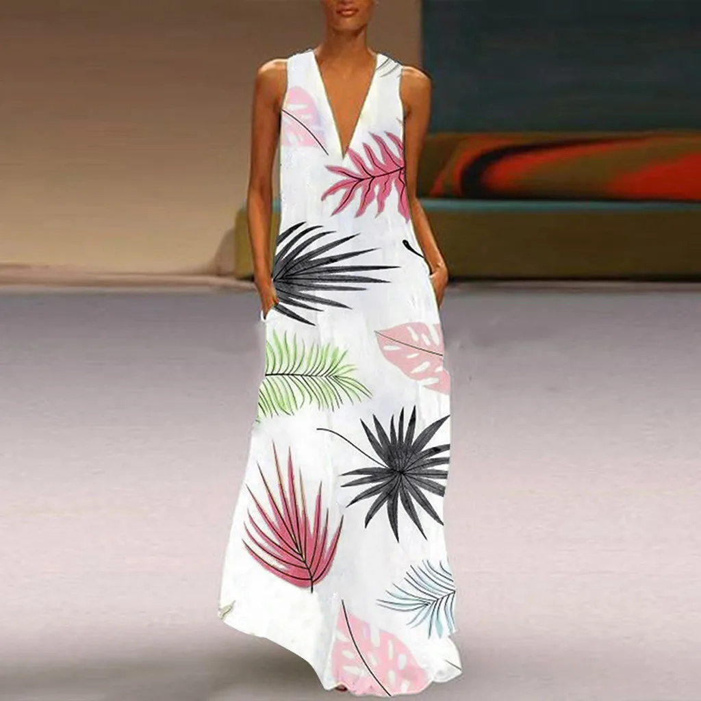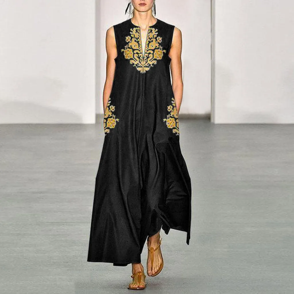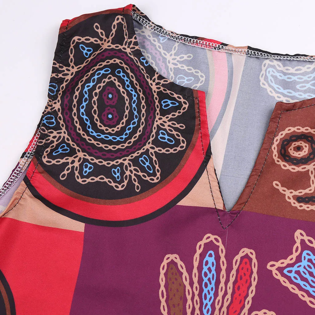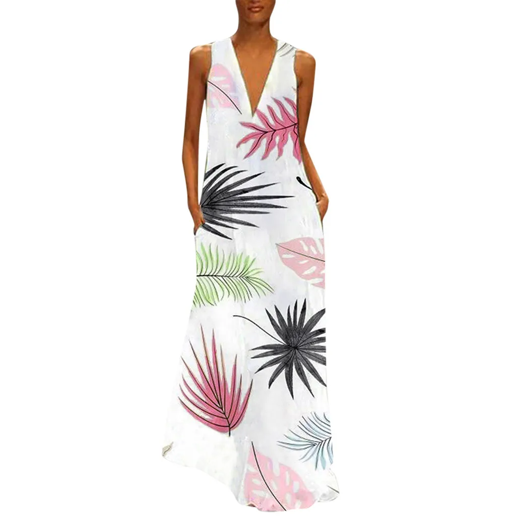 Женское винтажное Повседневное платье без рукавов, с V-образным вырезом и вышивкой, большие размеры, на лето