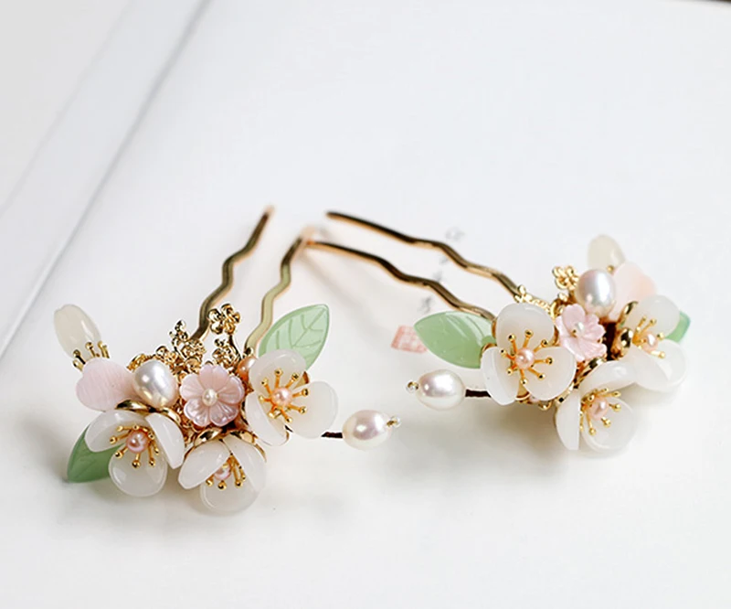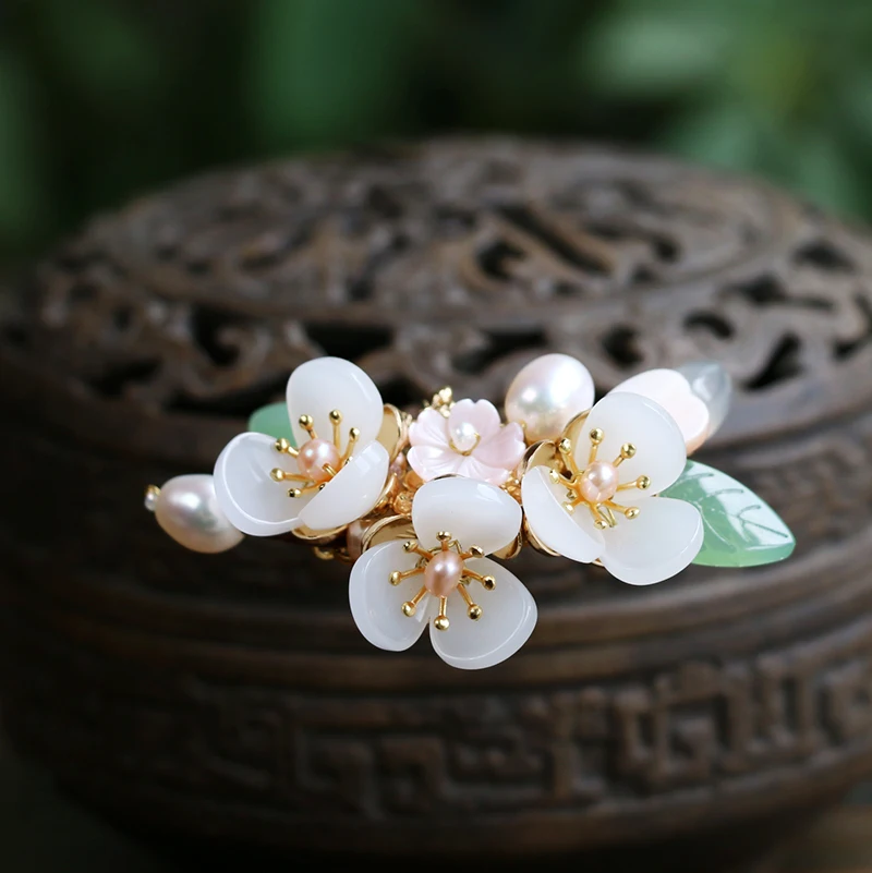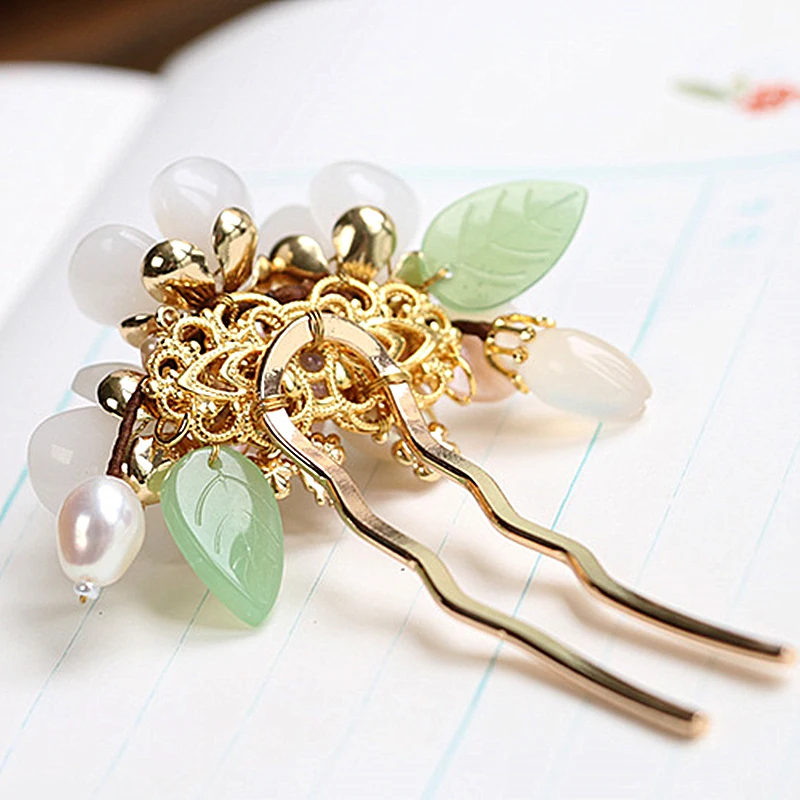 Винтажная китайская заколка ручной работы с цветами, медные заколки для волос с пресноводным жемчугом для женщин, заколка для волос из натурального камня, свадебный головной убор, ювелирные изделия, свадебные аксессуары для волос, Pince Cheveux Femme WIGO1359B