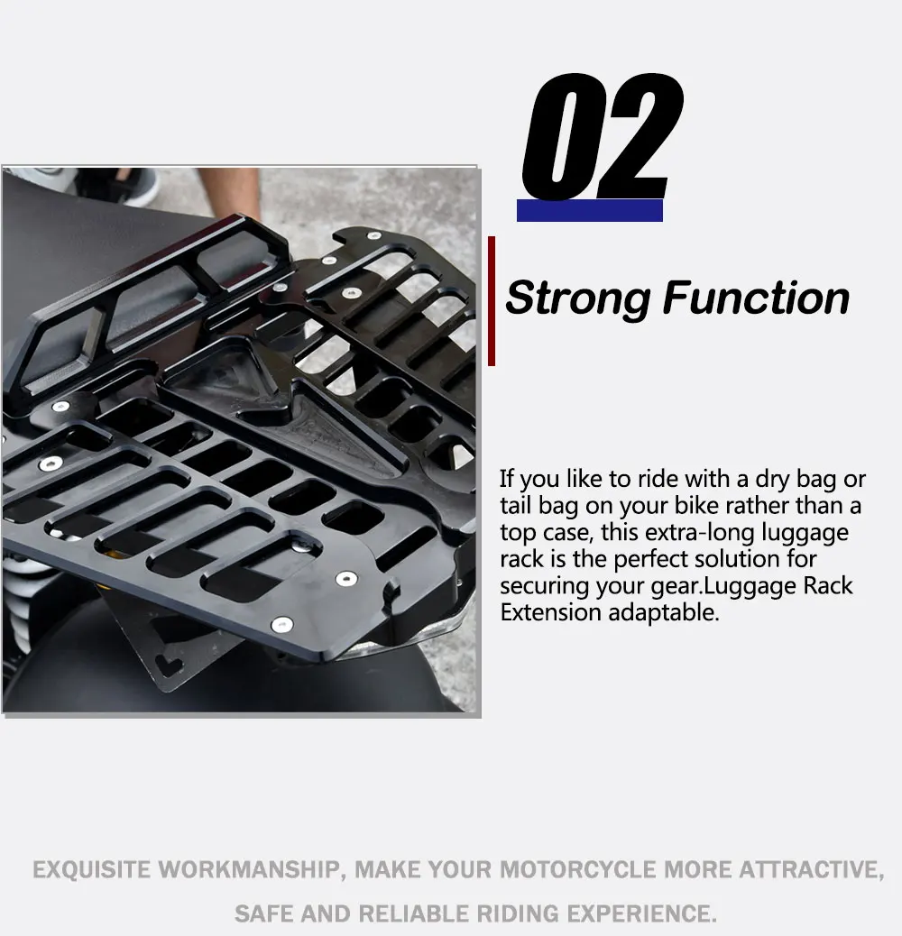 Особенности: 1: Если вам нравится ездить с сухой сумкой или хвостовой сумкой на велосипеде, а не верхний чехол, эта сверхдлинная багажная стойка является идеальным решением для обеспечения безопасности вашего снаряжения. Расширение багажной стойки адаптируется. 2: сняв ПАССАЖИРСКОЕ СИДЕНЬЕ, высокий задний стеллаж и заменив его на багажную стойку, вы можете держать центр тяжести ниже на вашем мотоцикле во время загрузки, помогает улучшить баланс и обработку. 3: этот удлиненные стеллаж для выставки товаров меры по длине, начиная с передним сиденьем к хвосту светильник.