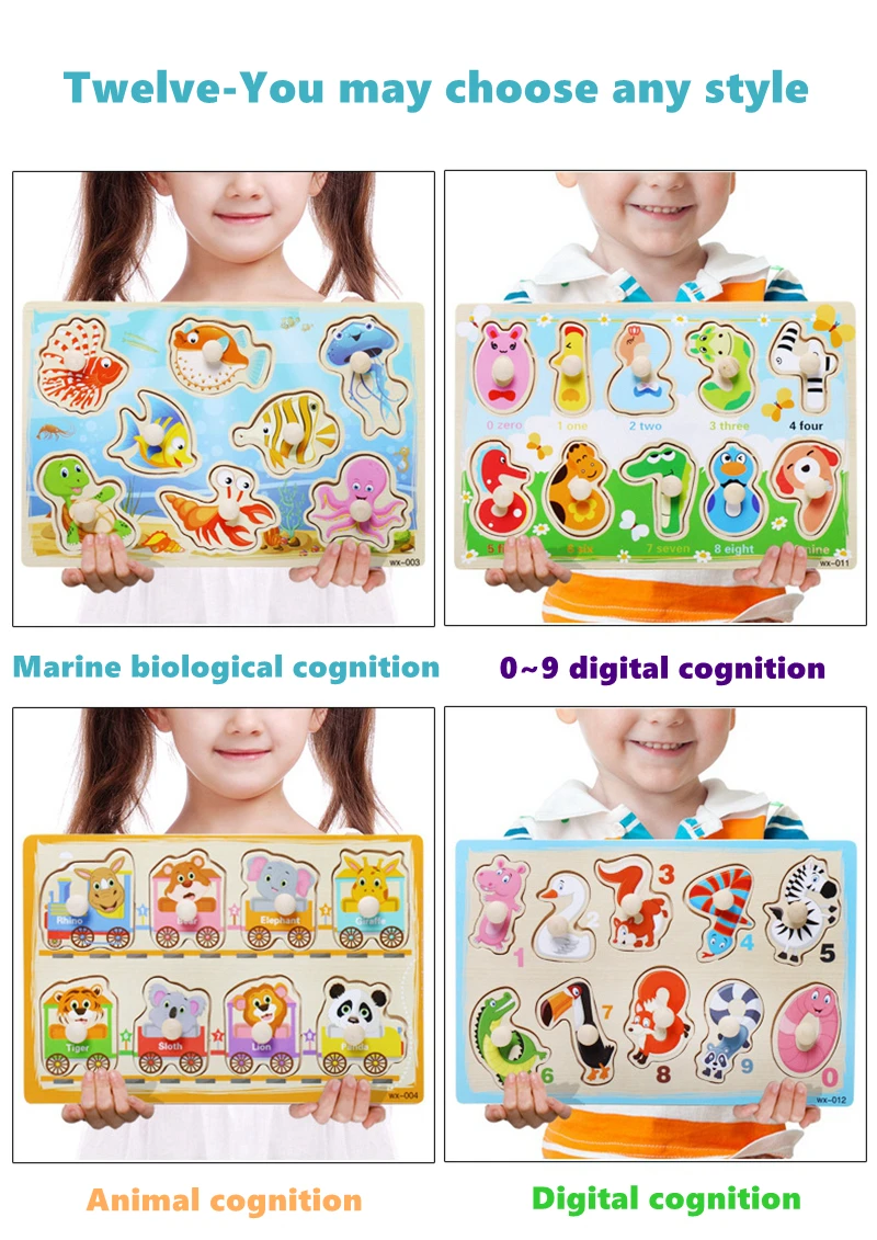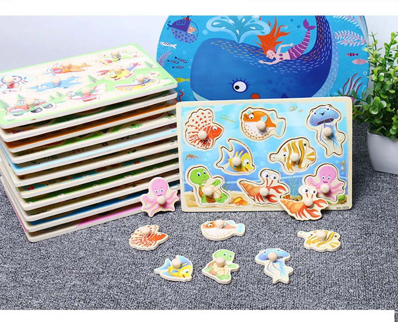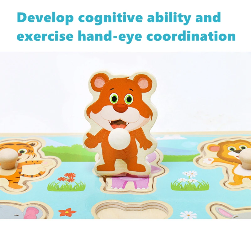 Пазлы деревянные Ручные захваты игрушки животных для детей Пазлы для детей познание детская игрушка Монтессори мультфильм деревянные головоломки подарки