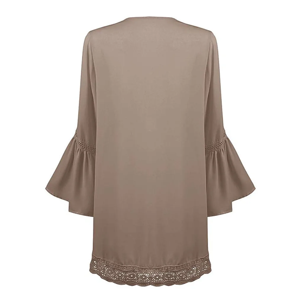 Для женщин Повседневный однотонный кружевной шифоновый кардиган с длинными рукавами, свободное кимоно, блузка, топы