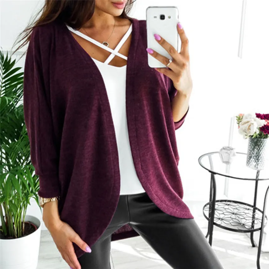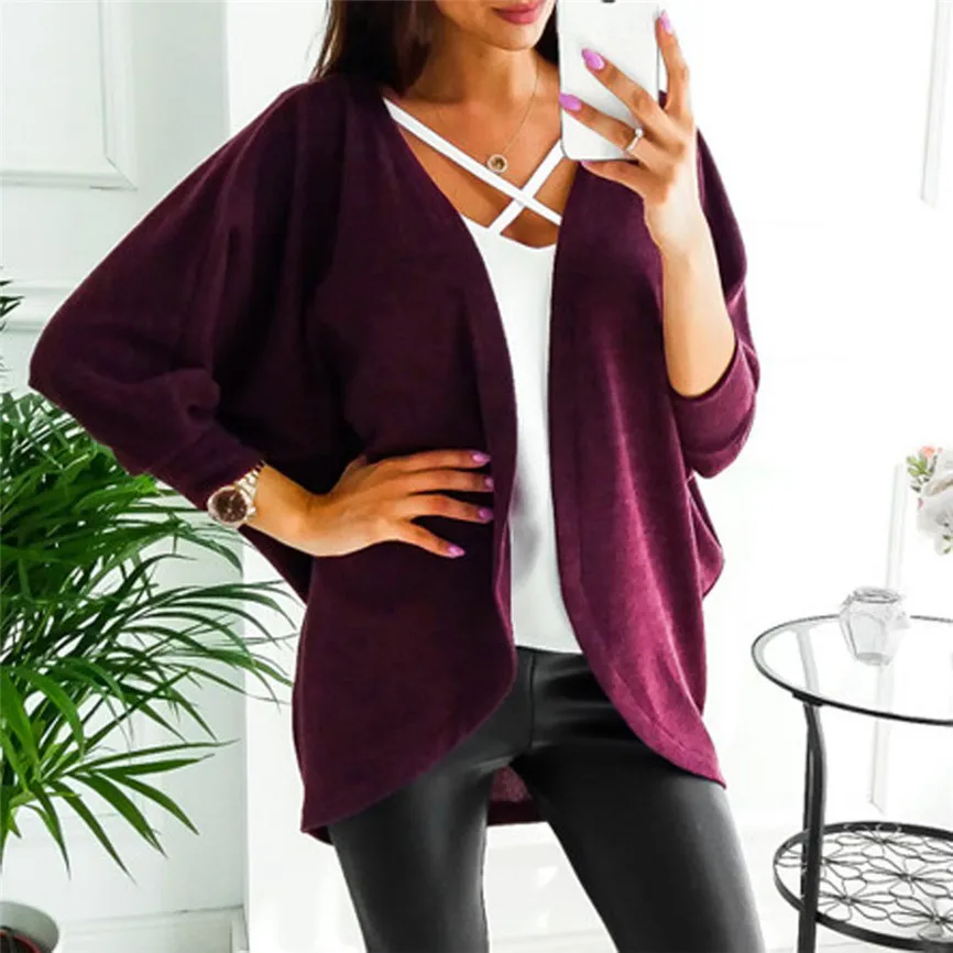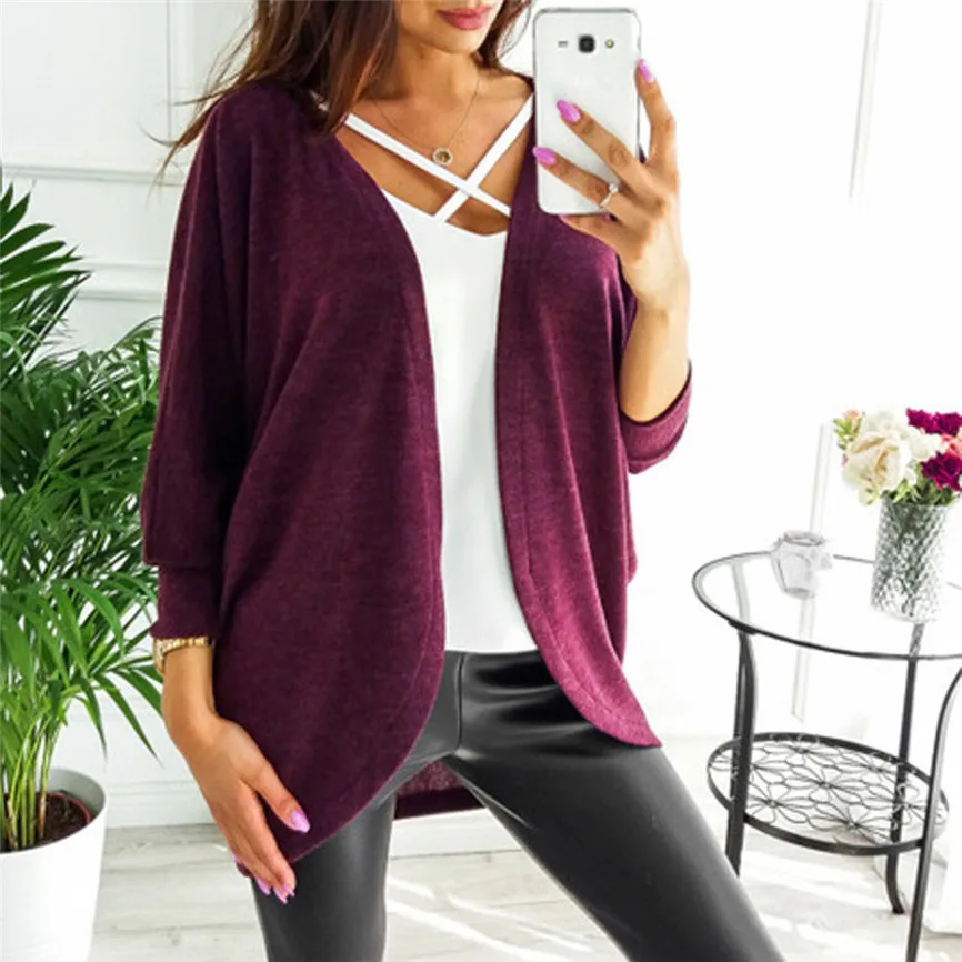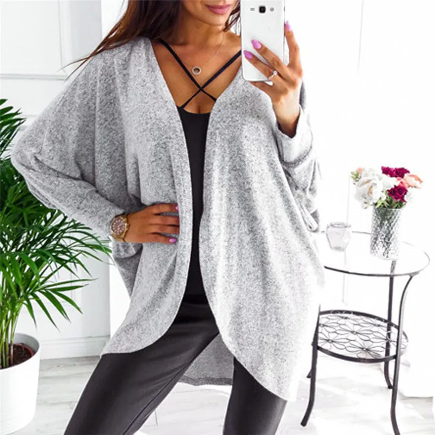 Женский трикотажный кардиган свитер асимметричный подол с длинным рукавом пальто Топы