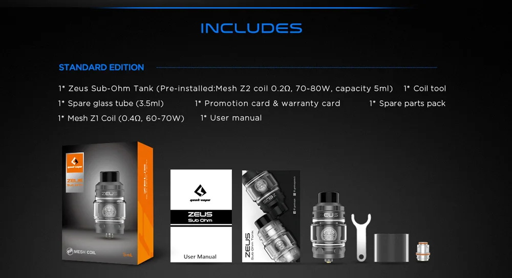 Geekvape Zeus sub ohm tank 5 мл vape распылитель подходит для сетчатой катушки 810 распылитель для наконечника дрип-тип
