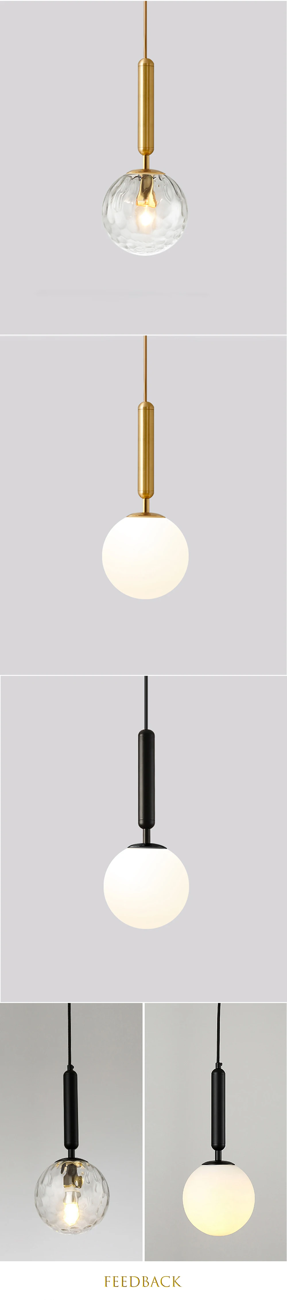 Подвесные светодиодные светильники в скандинавском стиле, стеклянный шар для спальни, бара, подвесной светильник черного и золотого цветов, современный подвесной потолочный светильник E27