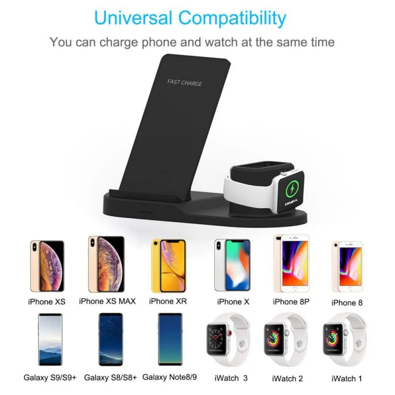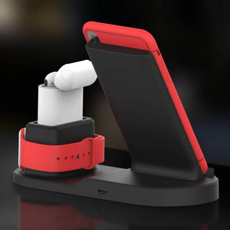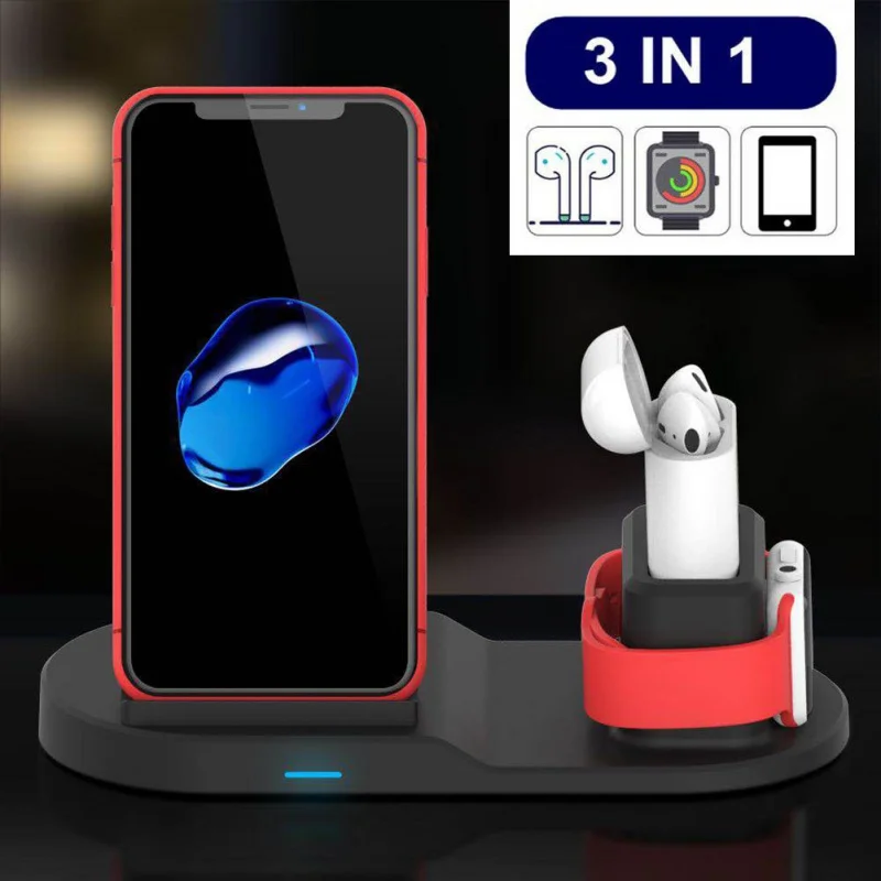 3-в-1 мобильный телефон часы наушники зарядные устройства Беспроводной быструю зарядку адаптер держатель подставка для мобильного телефона наручные наушники