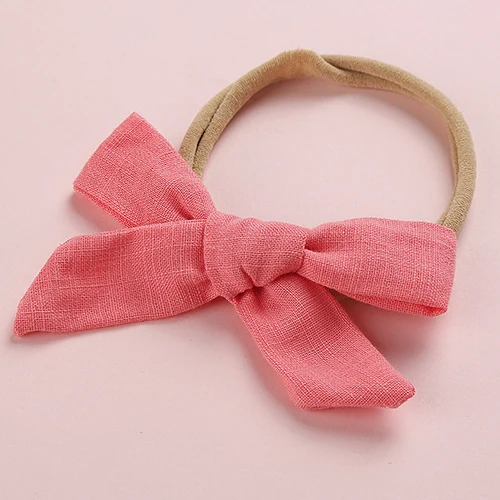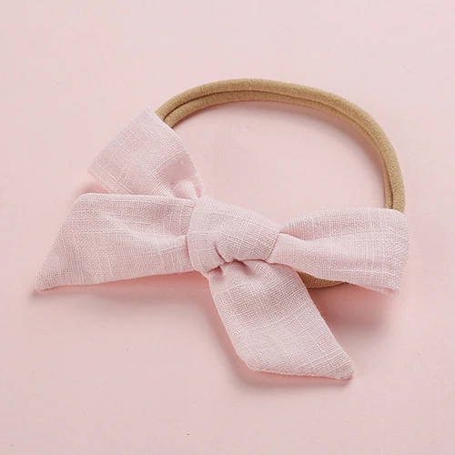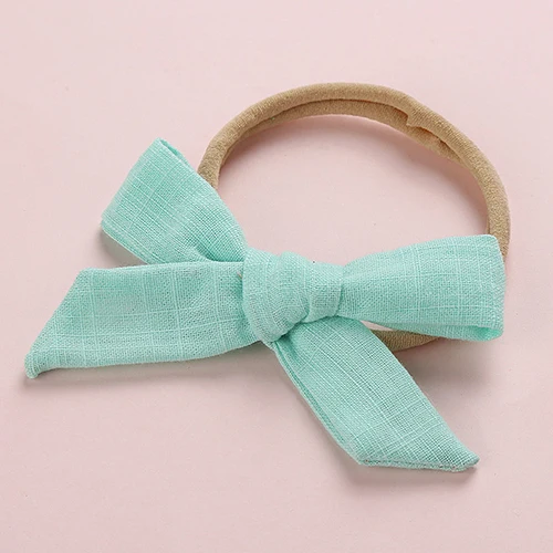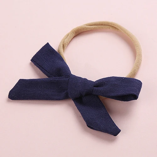 Милые однотонные нейлоновые детские повязки на голову для девочек, хлопок, лен, бант ручной работы, Эластичный Бант, повязка на голову для новорожденных, аксессуары для волос