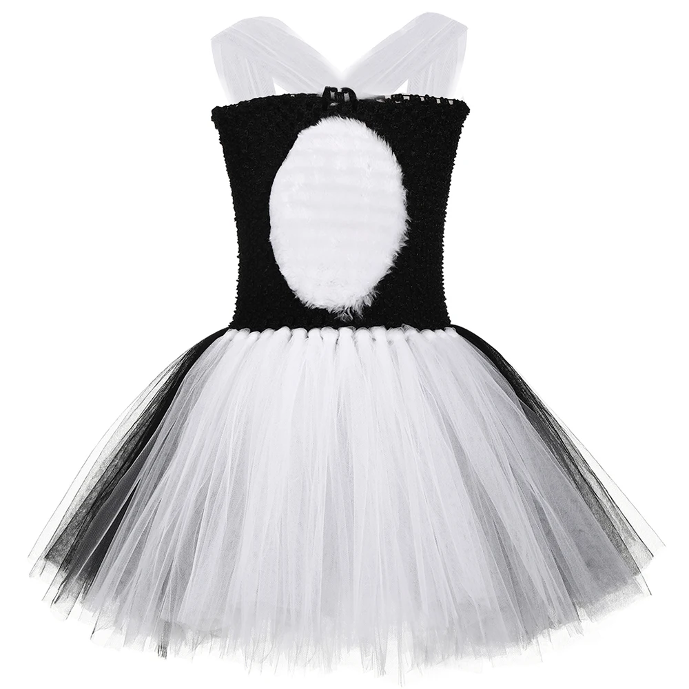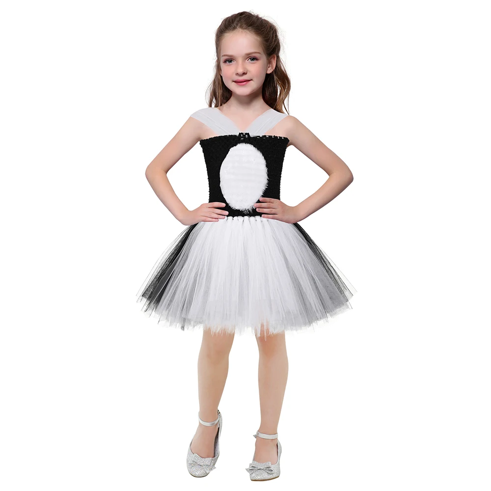 Черные и белые китайская Очаровательная панда карнавальный костюм героев мультфильмов платье-пачка для девочек с бант на голову галстук хвост Хэллоуин наряд на первый день рождения