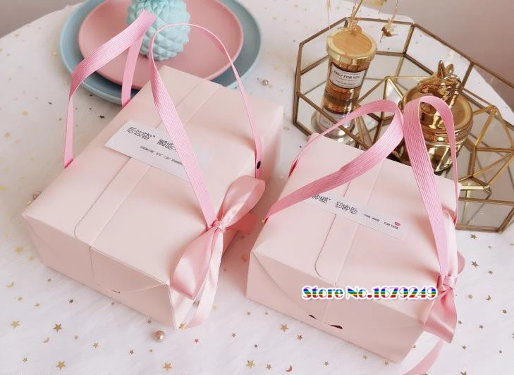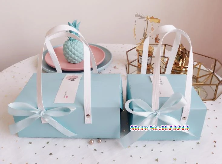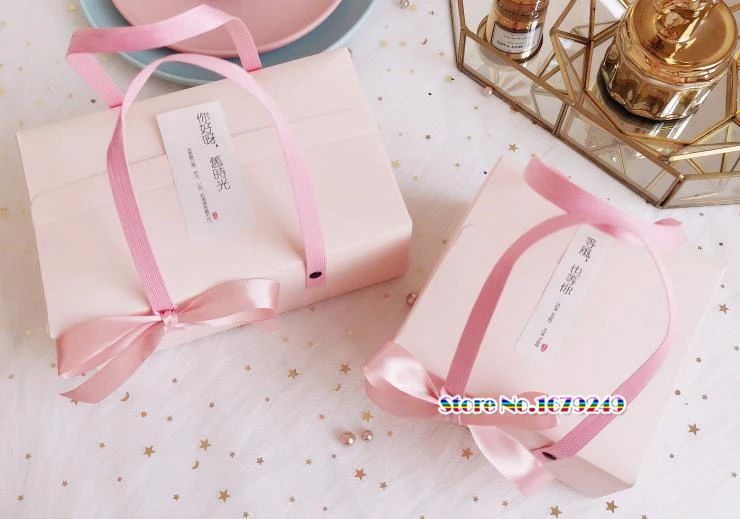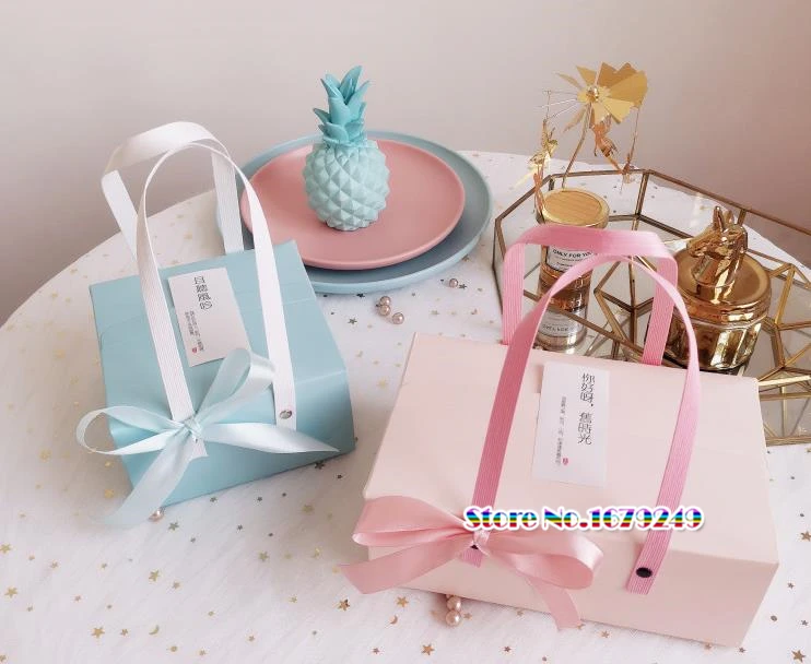 Розовая синяя бумажная коробка с ручкой, кекс юэбин коробка конфет, подарочные мешочки под конфеты бесплатная раздача подарок коробки