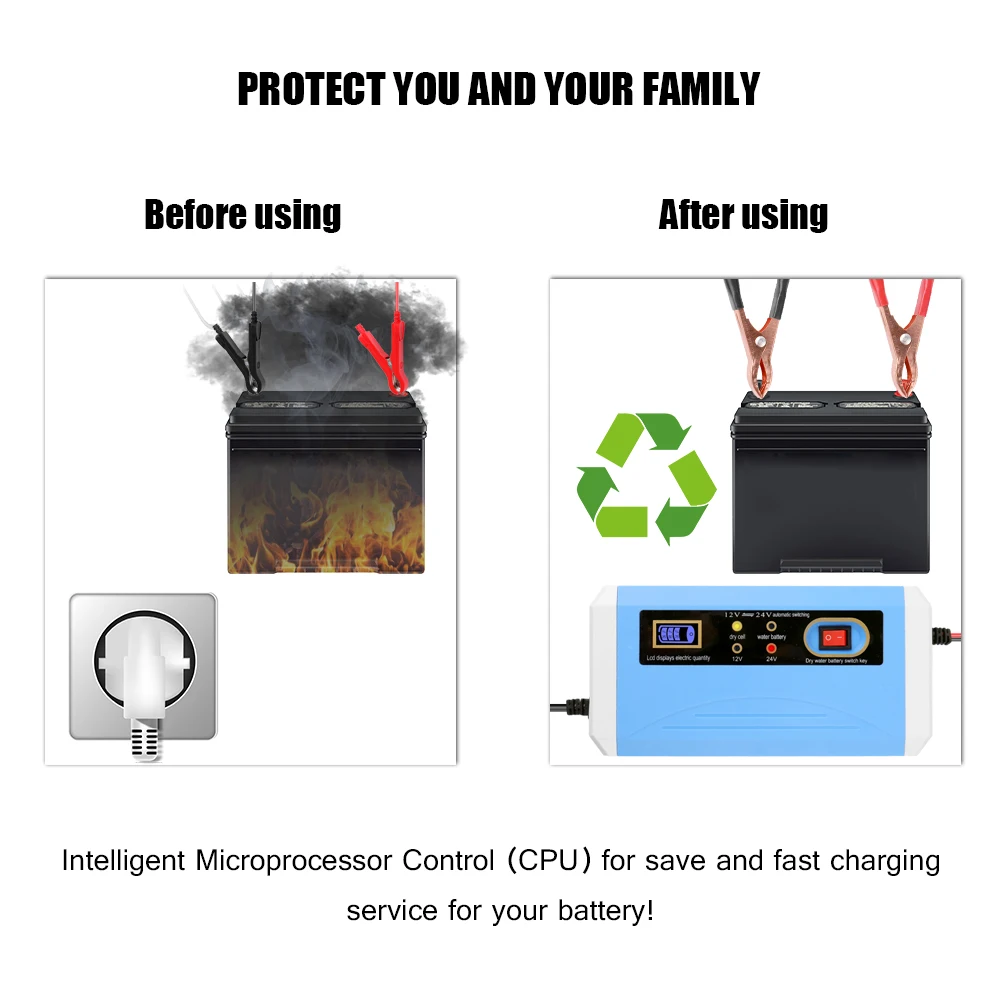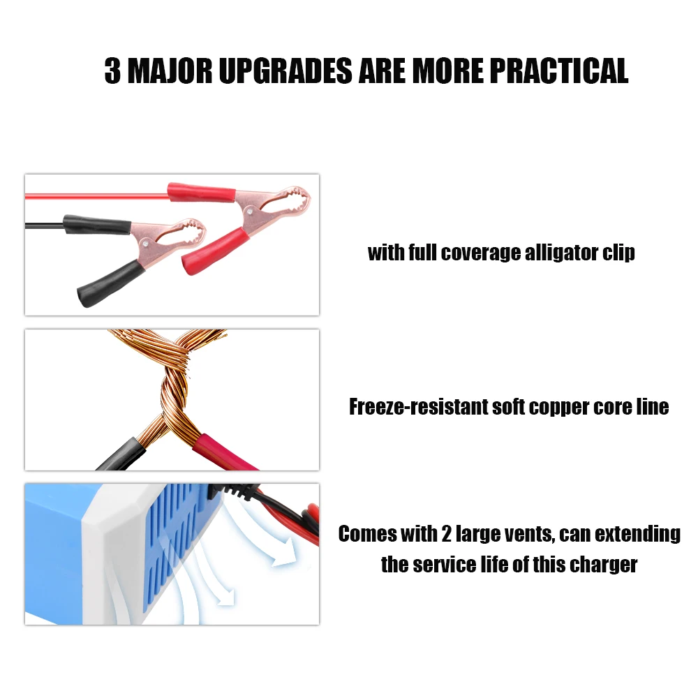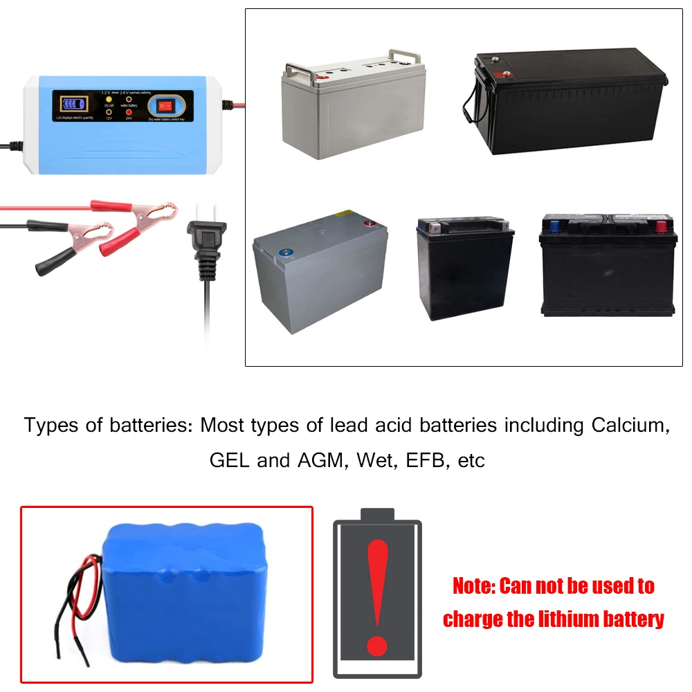 Автоматическое определение напряжения 12 В или 24 В, Совместимость с большинством автомобилей и мотоциклов.