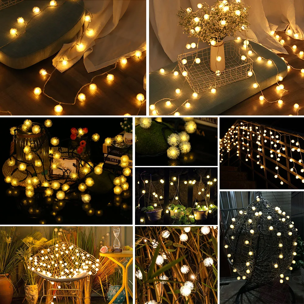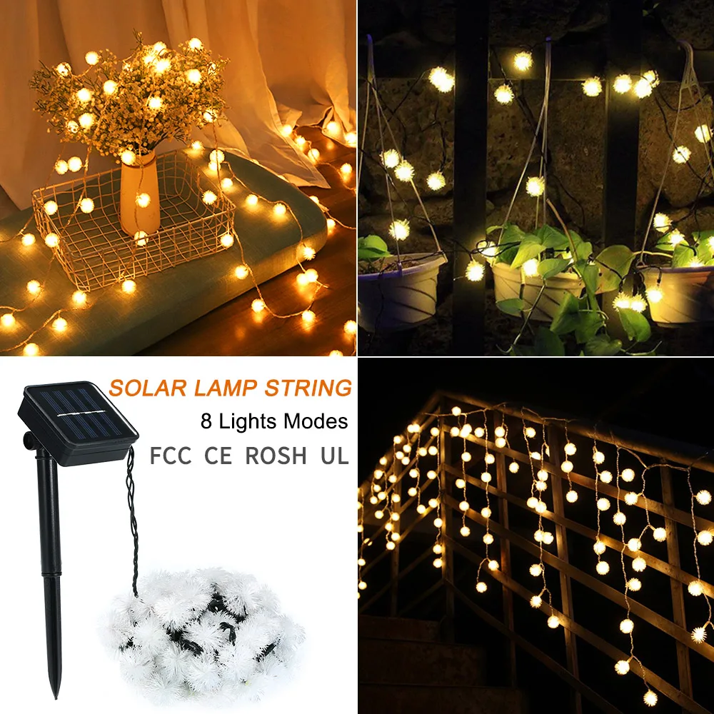 Рождественское свадебное украшение, солнечный струнный светильник s 23ft 50, светодиодный веревочный светильник, шар-пуховик, 8 режимов, разные цвета, вечерние украшения