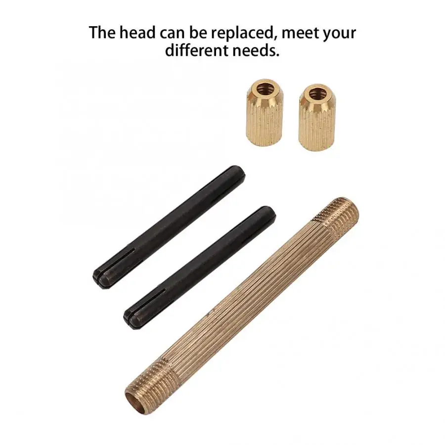Изготовлен из высококачественного медного материала, износостойкий, прочный и долговечный. Специально разработанный нескользящий рисунок ручки для удобного удержания. Компактный и легкий, легко носить с собой и удобно использовать. Головка может быть заменена, отвечает вашим различным потребностям. Подходит для зажима небольших игл, сверл и других мелких аксессуаров.