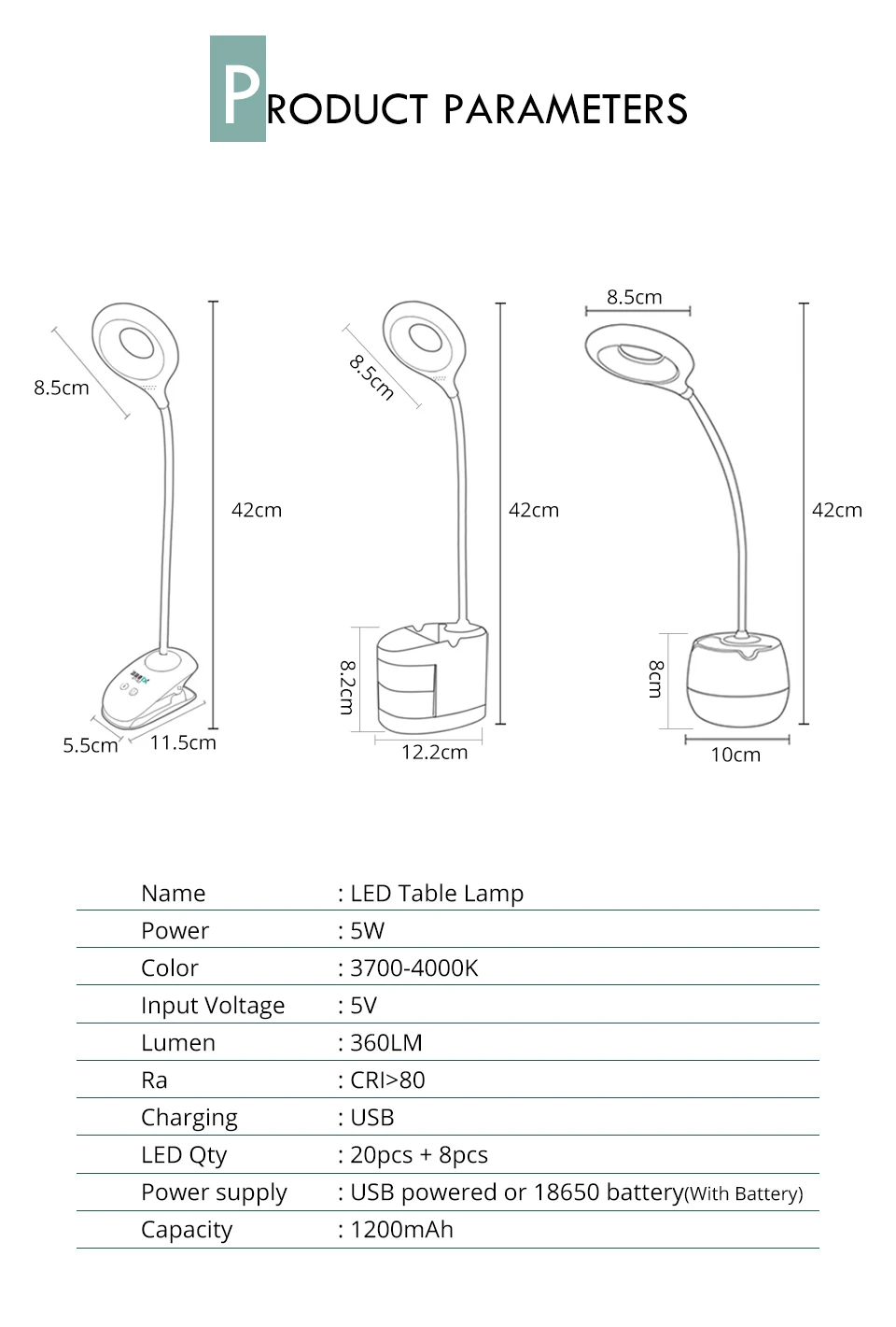 Особенности: 1. Бесступенчатое регулирование яркости, яркость могут быть отрегулированы в соответствии с требованиями. Имитируют естественный свет, уход за глазами, стробоскопическое отсутствие, снимает усталость глаз и эффективно предотвратить потерю зрения. 2. Многофункциональная лампа для чтения, а не только как лампа для чтения, базовый дизайн может использоваться в качестве мобильного телефона держатель, подставка для ручек для удобного хранения. 3. Перед использованием лампа для чтения, то вам нужно отрегулировать переключатель в направлении. Книга выключатель освещения является сенсорный выключатель. 4. Материал: абс-пластик + шланг, емкость аккумулятора: 1200MHA, номинальное напряжение: DC5V, номинальная мощность: 1 вт, цветовая температура: натуральный белый 3700-4000K. Specifcaiton: 1. Материал корпуса: АБС-пластик 2. Входное напряжение: 5 в пост. Тока (Питание от USB) 3. Режим переключения: сенсорный переключатель 4. Емкость батареи: 1200 мач (круглый потолочный светильник)/ 1500 мач (лампа на прищепке)/ 1200 мач (квадратный потолочный светильник с 18650 батареи) 5. Индикация во время зарядки: USB зарядка 6. Кол-во светодиодов: 20 шт. + 8 шт. 7. 3 уровня яркости затемнения