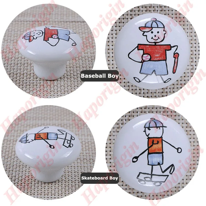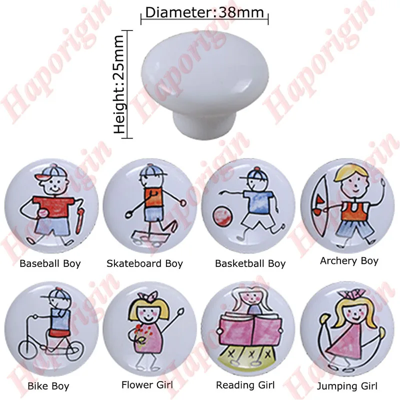 Мебельные ручки, милые Мультяшные керамические ручки для шкафа, спортивные детские ручки для гардероба, Детские комод для спальни, выдвижные ящики, Haporigin Тип: керамическая ручка для шкафа Материал: Керамика Цвет: белый Расстояние между отверстиями: одно отверстие Диаметр: 38 мм Высота: 25 мм Посылка: одна ручка и один винт Характеристика: образцы и ручки шкафа европейского стиля.