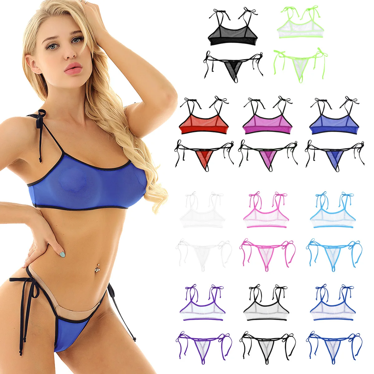 Бретельки-спагетти, дизайн с галстуком-бабочкой можно регулировать, чтобы соответствовать вашему размеру, подходя под горячее дно-стринги.