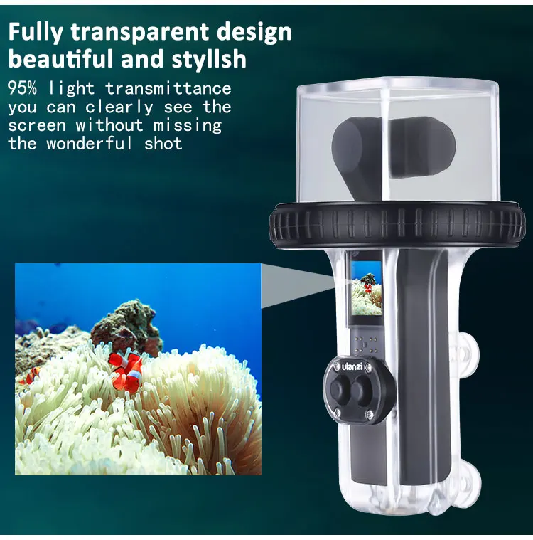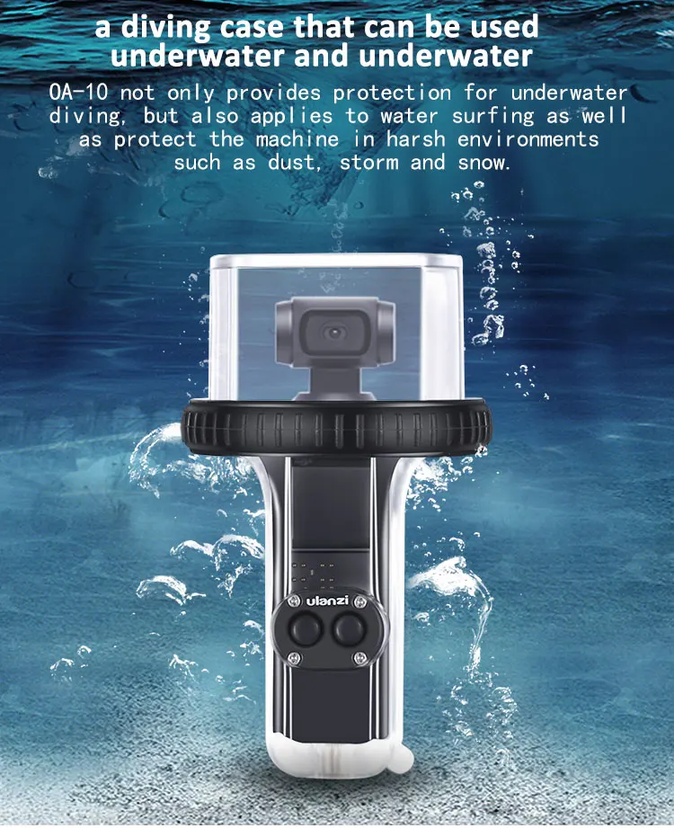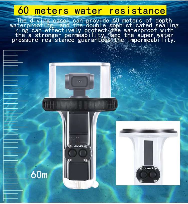 Особенности: 1. Born для подводных видов спорта, подходит для серфинга, дайвинга и т. д. 2. Он также может использоваться в дождливой, снежной, ветреной, пыльной и другой среде, защищает камеру. 3. Глубокая Водонепроницаемая level-60m воды. Защита от давления непроницаемая (протестирована) 4. Полусферический купол, не блокирует зрение увеличивает угол обзора для лучшей общей прошивки. 5. Полностью прозрачный дизайн, съемка более свободно, более 90% пропускания. 6. Точное формование, специально разработано для OSMO POCKET 7. Защита от падения, анти-давление против падения, защита для камеры 8. Прецизионное высококачественное уплотнительное кольцо, высокая прочность и герметичность. 9. Конструкция кнопки управления, подводный контроль более гибкий. 10. Эргономичный дизайн, легко держать, не скользит с ремешком, больше страховки (подарочный ремешок) 11. Застежка-молния, замок на запястье, чтобы предотвратить дрейфование или скольжение. 12. Можно использовать с удлинителем, штативом и т. д. (адаптер, удлинитель, штатив не включены)