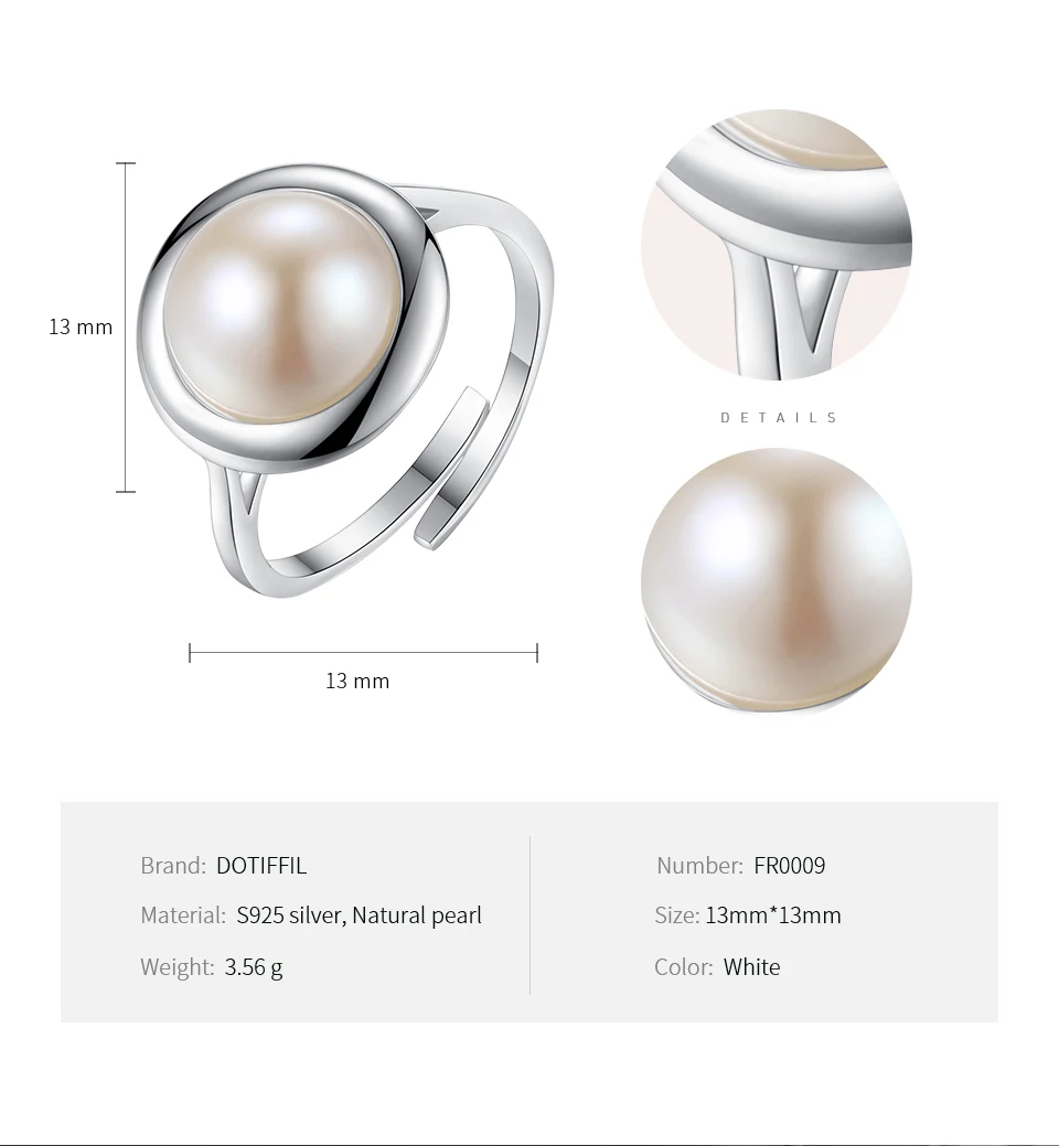 Бренд: DOTEFFIL Тип камня: 100% натуральный пресноводный жемчуг Жемчуг Цвет: белый Жемчужный Блеск: AAAAA Поверхность жемчуга: без дефектов Размер: 13 мм * 13 мм Вес: 3,56 г Материал металла: 100% 925 пробы Серебряный Металлический штамп: S925 Упаковка: Подарочная сумка Они модные и элегантные, подходят для ношения круглый год Вы можете носить его на свадьбу/вечерние/помолвки/юбилей Роскошная блестящая ручная работа/высокое качество